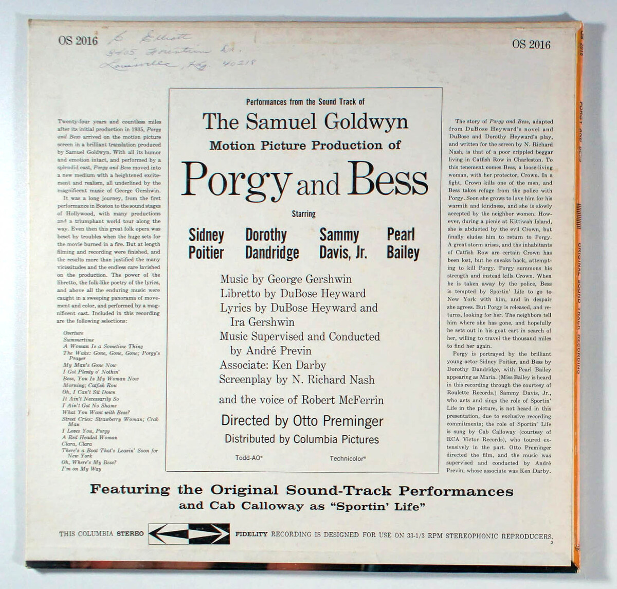 Porgy and Bess (1959) Vinyl LP Sidney Poitier, Gershwin, Soundtrack &