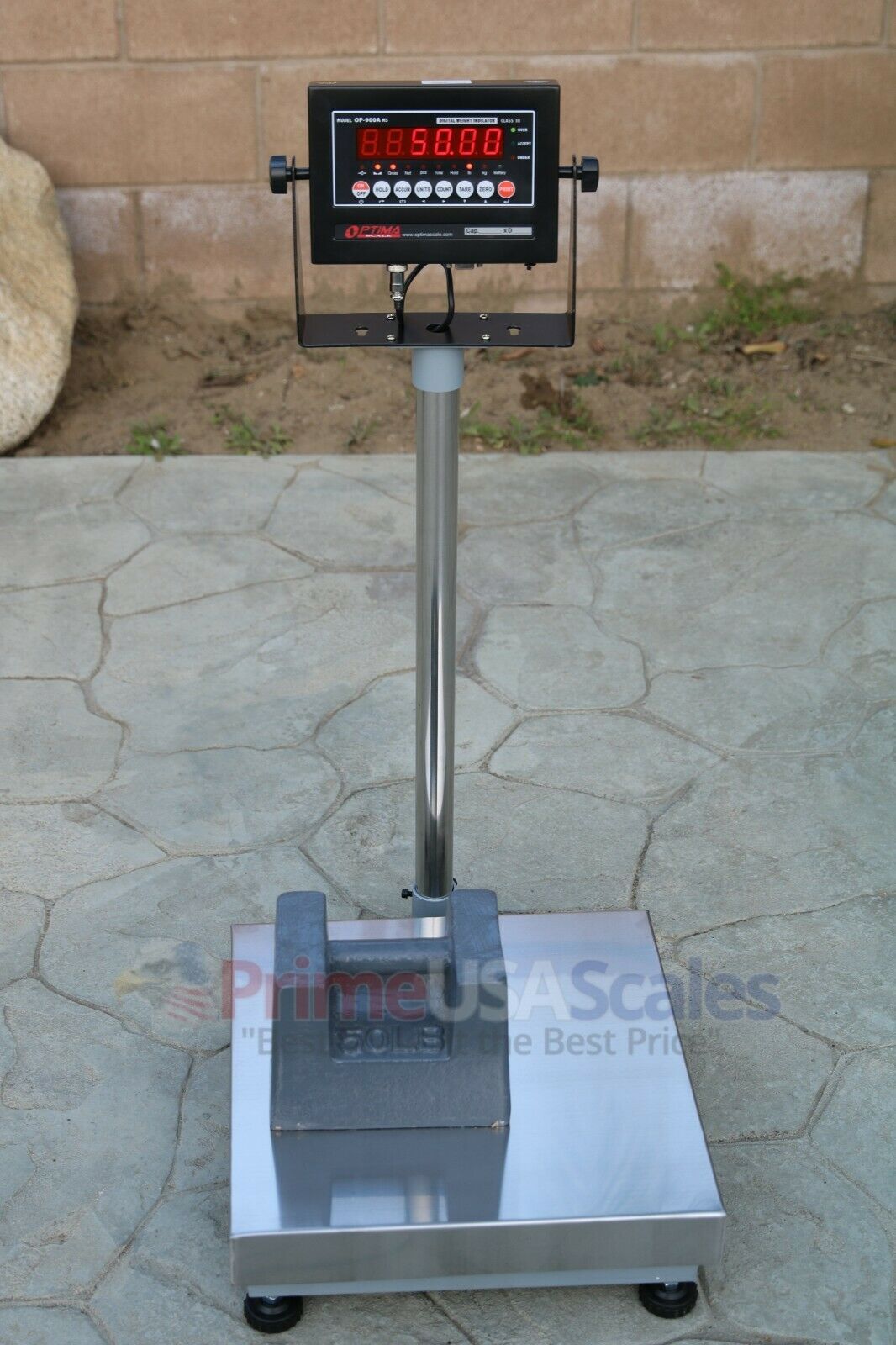 Prime USA Scales Optima OP-915 bench scale is a 16" x 16" platform stainless steel platter. Ideal weighing solution for application such as portion control, food processing, straight weighing or over/under weighing, and much more. Great for recycling, scrap metal, weighing by the pound, or any other legal for trade applications. The OP-915-1616 weighs up to a 60 lb capacity and is accurate down to .002 lb (30kg x 1g). Included is our LCD or LED digital indicator, calibrated for accuracy, and free shipping. The bench scale includes: ---120VAC 60 Hz AC adapter and rechargeable battery ---Welded sturdy construction ---High accuracy single point strain gauge aluminum load cell ---NTEP 6 digit, 1" high bright red LED display ---Hinged bracket at the top of column allows indicator to tilt up or down for optimum viewing angle ---4 adjustable feet for both even and uneven surfaces ---kg/lb ---Wall Mount and hardware ---IP rating: splashproof IP65 ---2 Year Limited Warranty ---Max Capacity: 300lb ---Accuracy: .05lb ---Pan Size: 16"x16" ---Frame Material: Carbon Steel We strive for 100% Feedback! WHY BUY FROM US? We offer a quality built product at a reasonable price. We specialize in scales and nothing else. We offer sales, service, and calibration in the largest cities throughout the United States. We stand behind our products and have a knowledgeable staff ready to help with any questions. We manufacture American made products, build custom scales, and offer only the best quality.