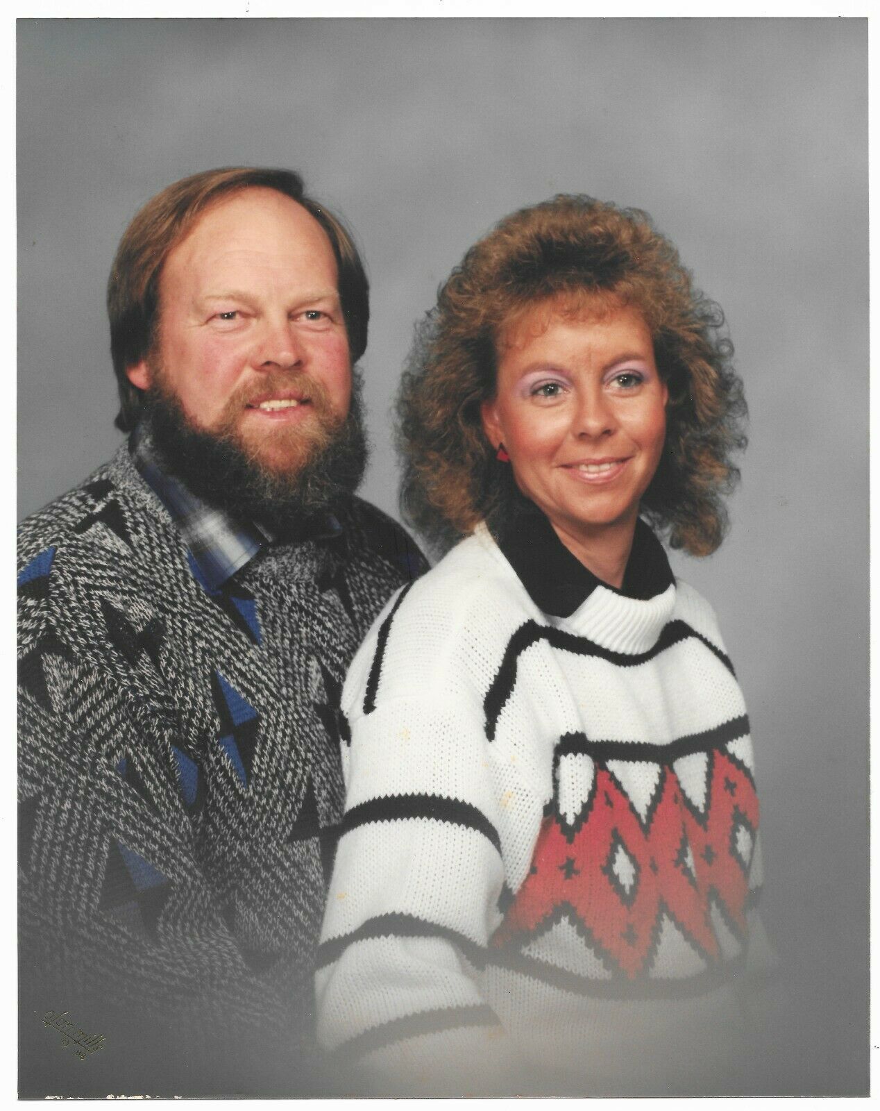 Vintage 80s COUPLE PHOTO Man & Woman Ugly Sweaters Balding & Perm OLAN MILLS