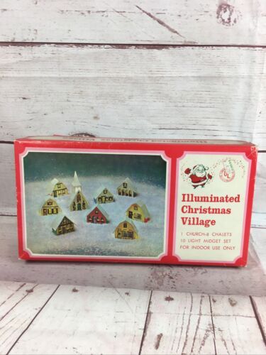 Vintage Holiday West Illuminated Christmas Village Church Chalets Made In Taiw