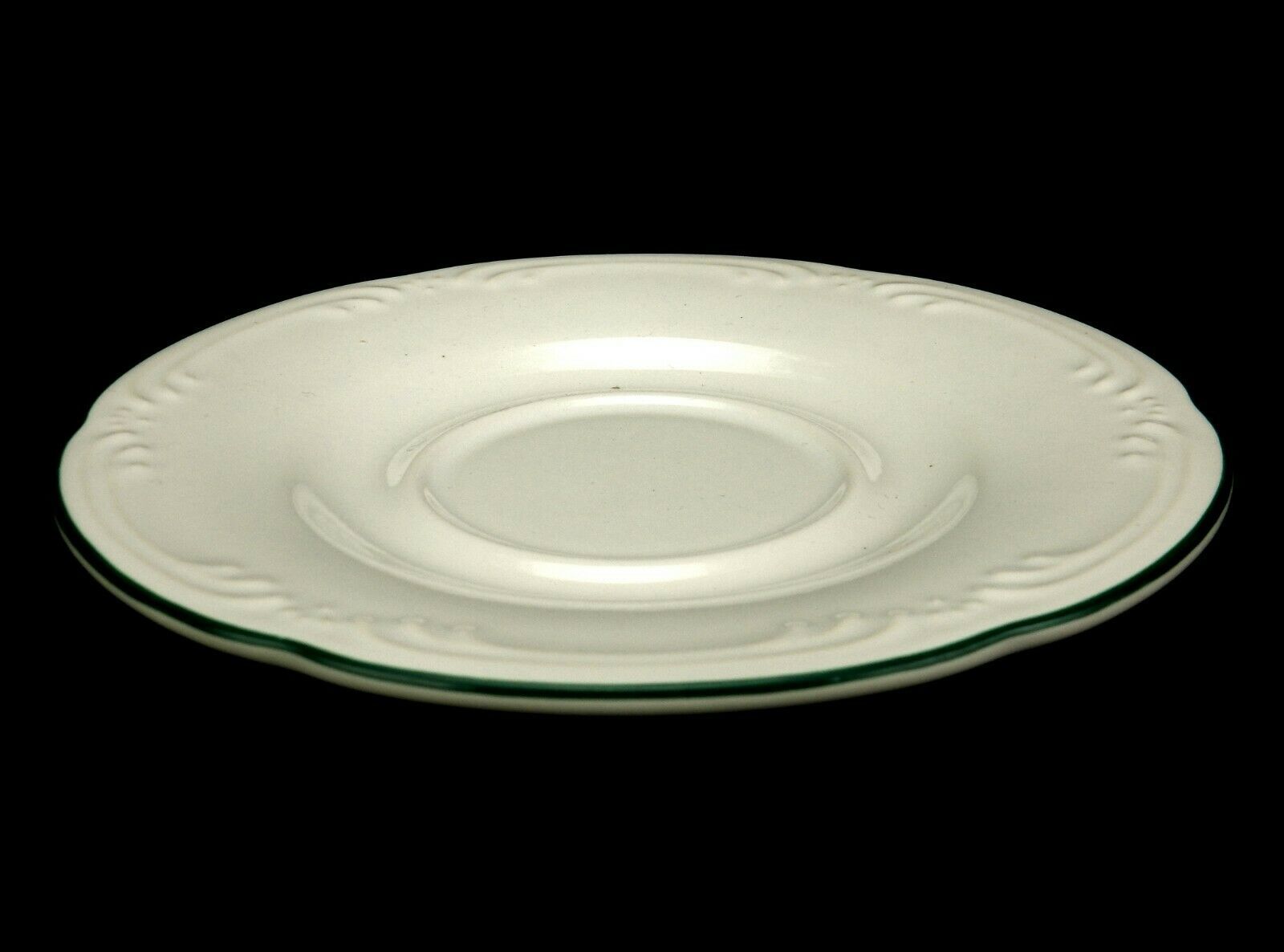 Saucers measure approximately 6" diameter, 5/8"H, 2 1/8" center well