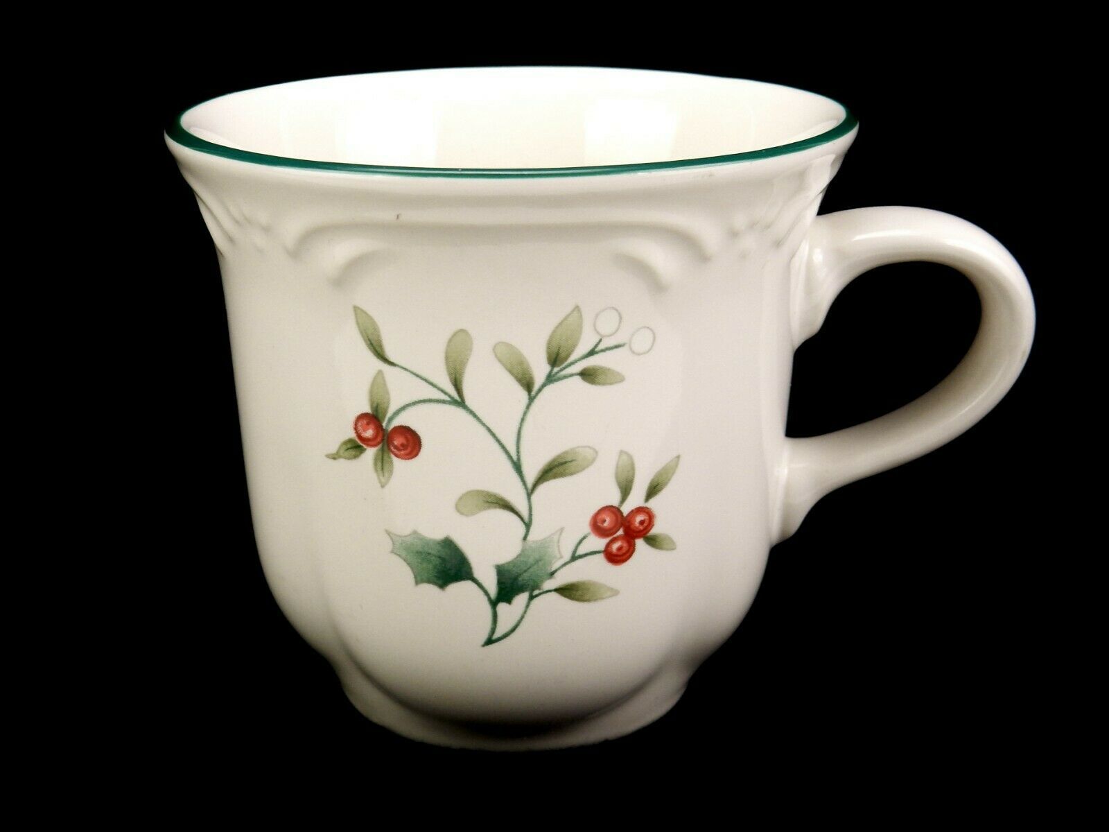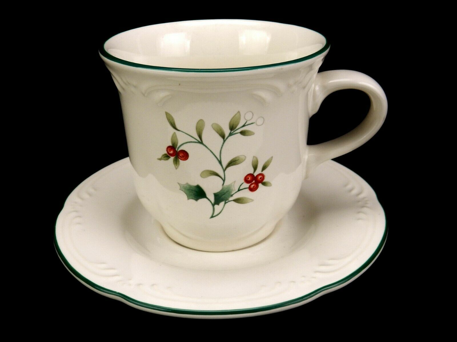 Pfaltzgraff Porcelain Cup Saucer Set, Christmas, Winterberry Holly Mistletoe