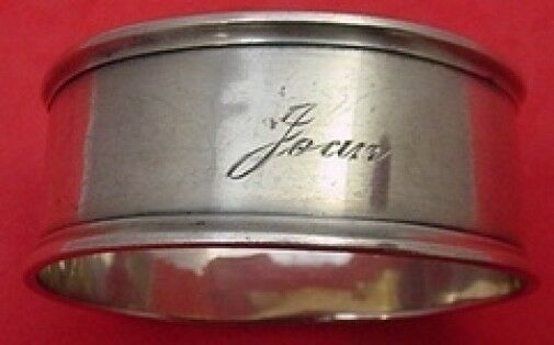 Sterling Silver NAPKIN RING 3/4" WIDE X 1 3/4" DIAMETER in the pattern UNKNOWN BY G.H. FRENCH. It is monogrammed "Joan" and is in excellent condition.