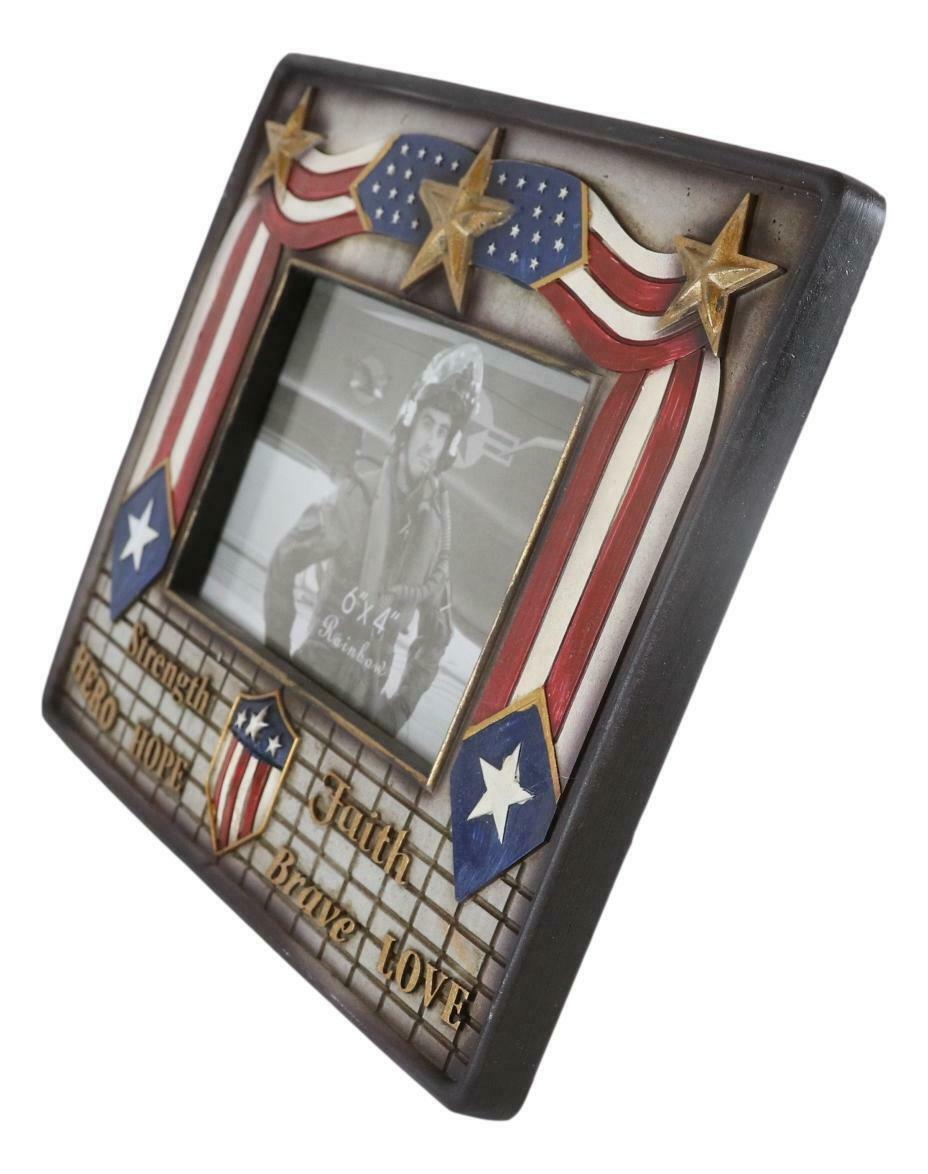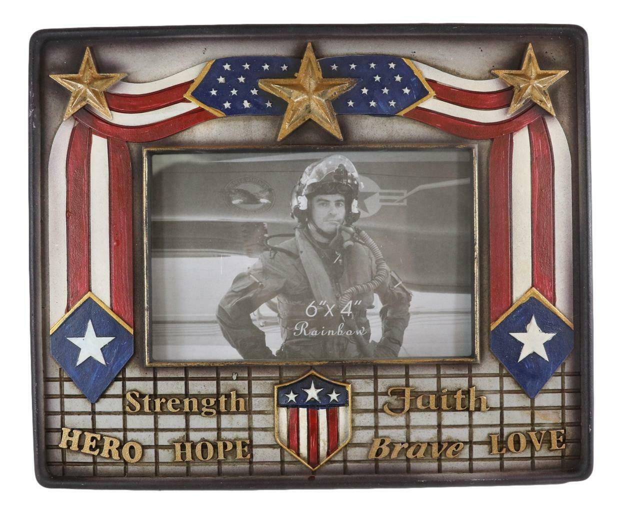 Ebros Patriotic USA Gold Stars Hope Hero Faith Strength Love Brave 6"X4" Picture Frame