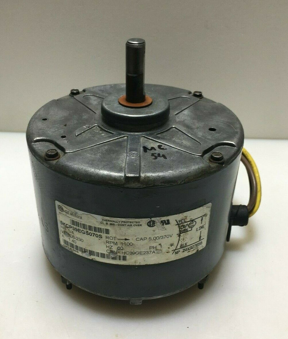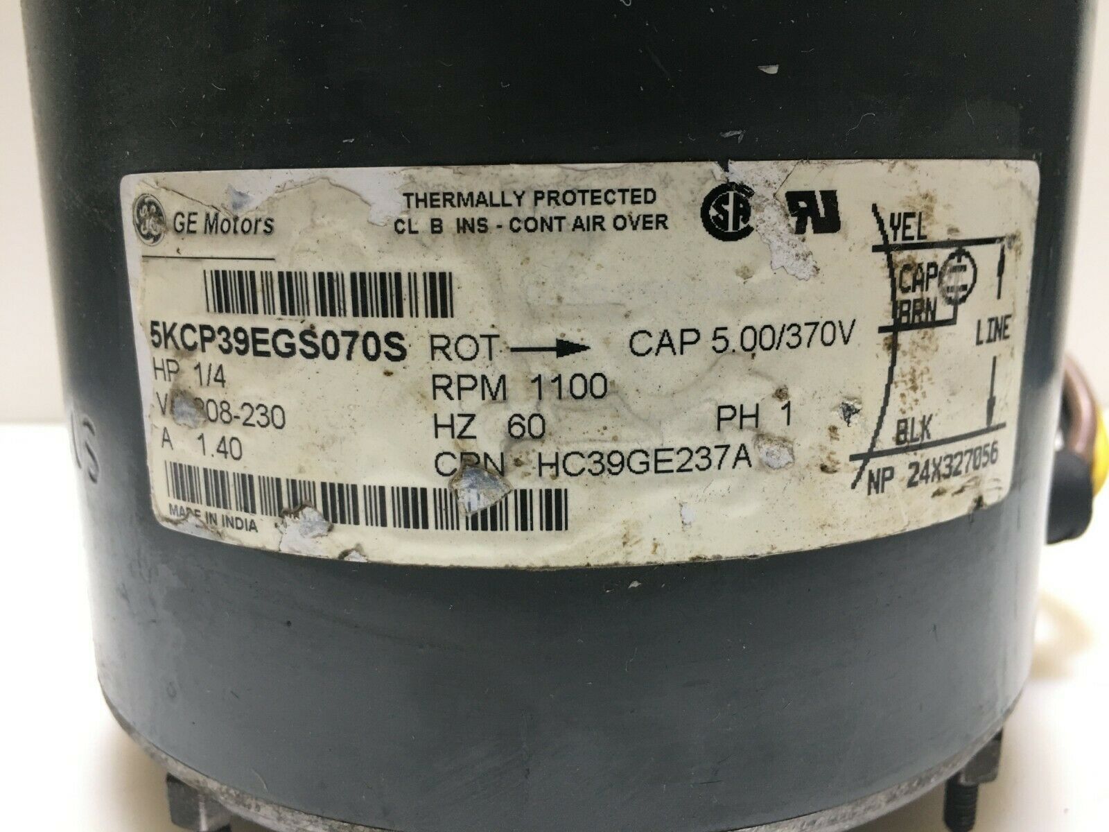This is Carrier Condenser Motor HC39GE237A GE 5KCP39EGS070S 1100RPM 1/4 HP 208-230 V 1 PH used part.