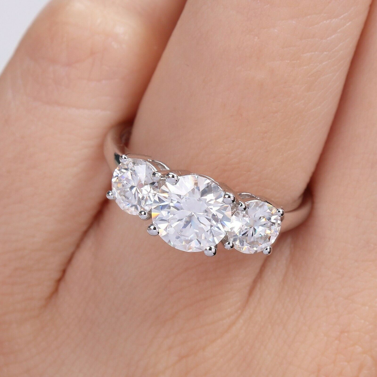 3-Stone 2 1/4ct DEW Diamond Engagement Ring in S925 Sterling Silver ring