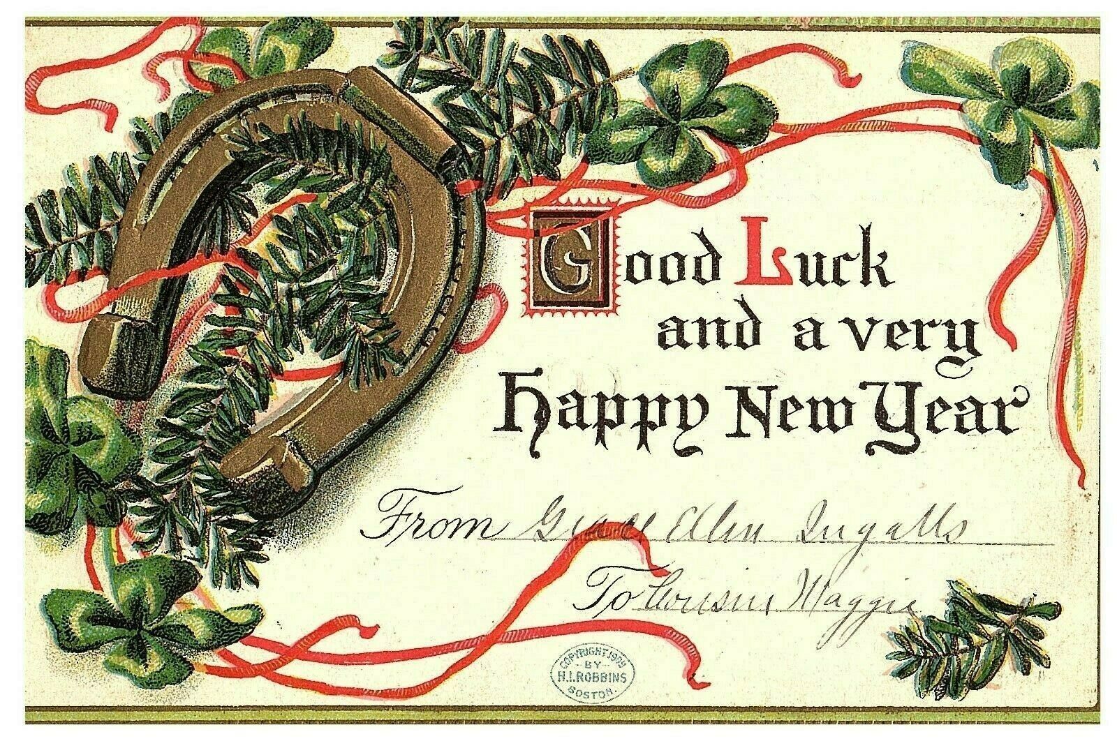 Good Luck & Happy New Year Vintage Happy New Year Postcard 1909