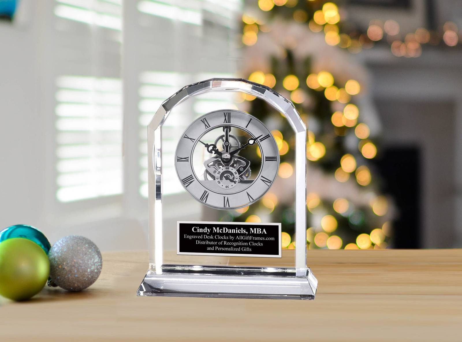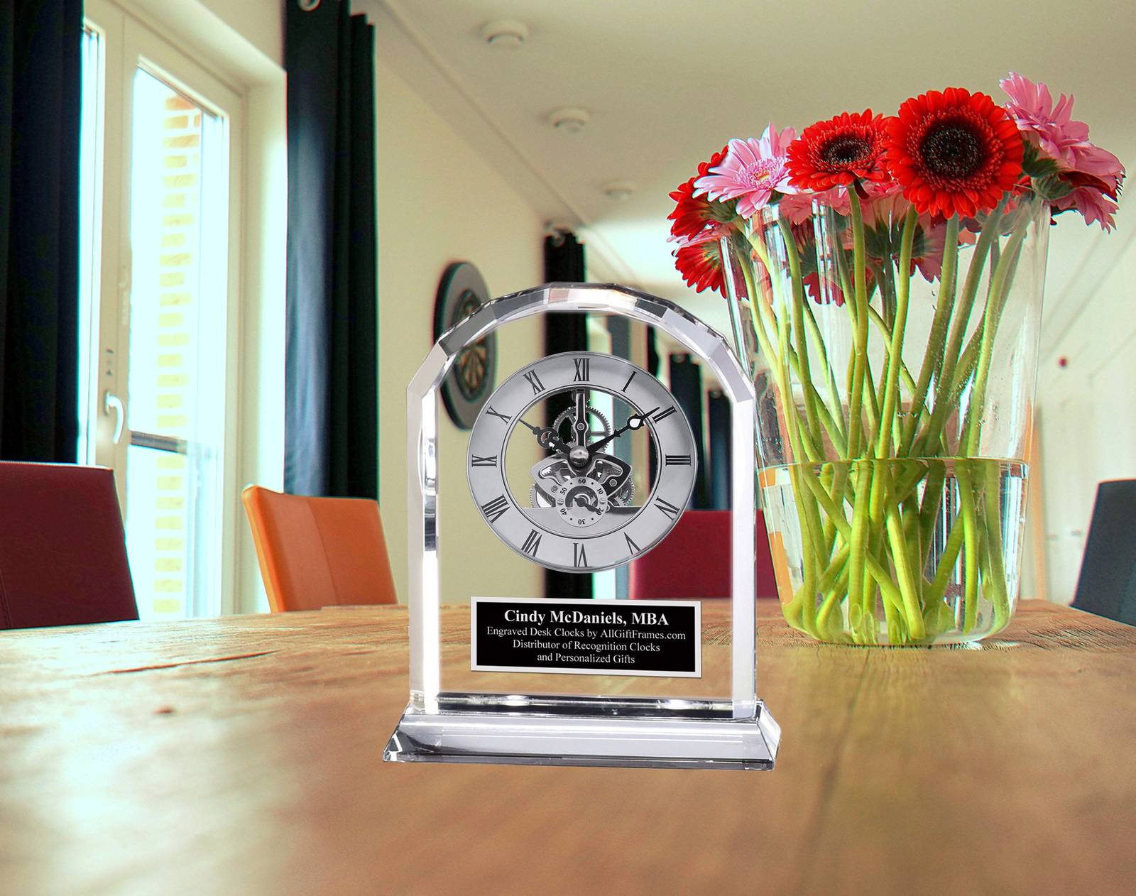 Congratulate and honor your employees or friend with this unique Diamond Cut Crystal DaVinci Clock. Multifaceted Gem Cut Clear Luxury Crystal Brush Silver Clock Black Silver Engraving Retirement Coworker Wedding Gift Retirement Graduation Anniversary Bride Groom Present. Luxurious optical crystal display casing capturing moving chrome gear clock. The brush silver gear mechanism timepiece graceful nestled inside the see through crystal glass casing. The silver chrome gear clock mechanisms move as the second, minute and hour hands rotates to tell time. A handsome timepiece design styled table clock that epitomizes the look of achievement. The sophisticated diamond cut designer styling of the desk tabletop clock creates a lovely gift of distinction for a graduate retiree new home housewarming promotion employee recognition wife groom anniversary wedding or any special occasion. A engraved gift is many things from a gesture of appreciation to caring and expressing love to someone you care about. Life is too short to give a boring gift that is useless and not functional. If you have someone graduating in your family or someone is retiring or getting promoted in military or workplace, then this premium tabletop mantel desk clock is recommended.