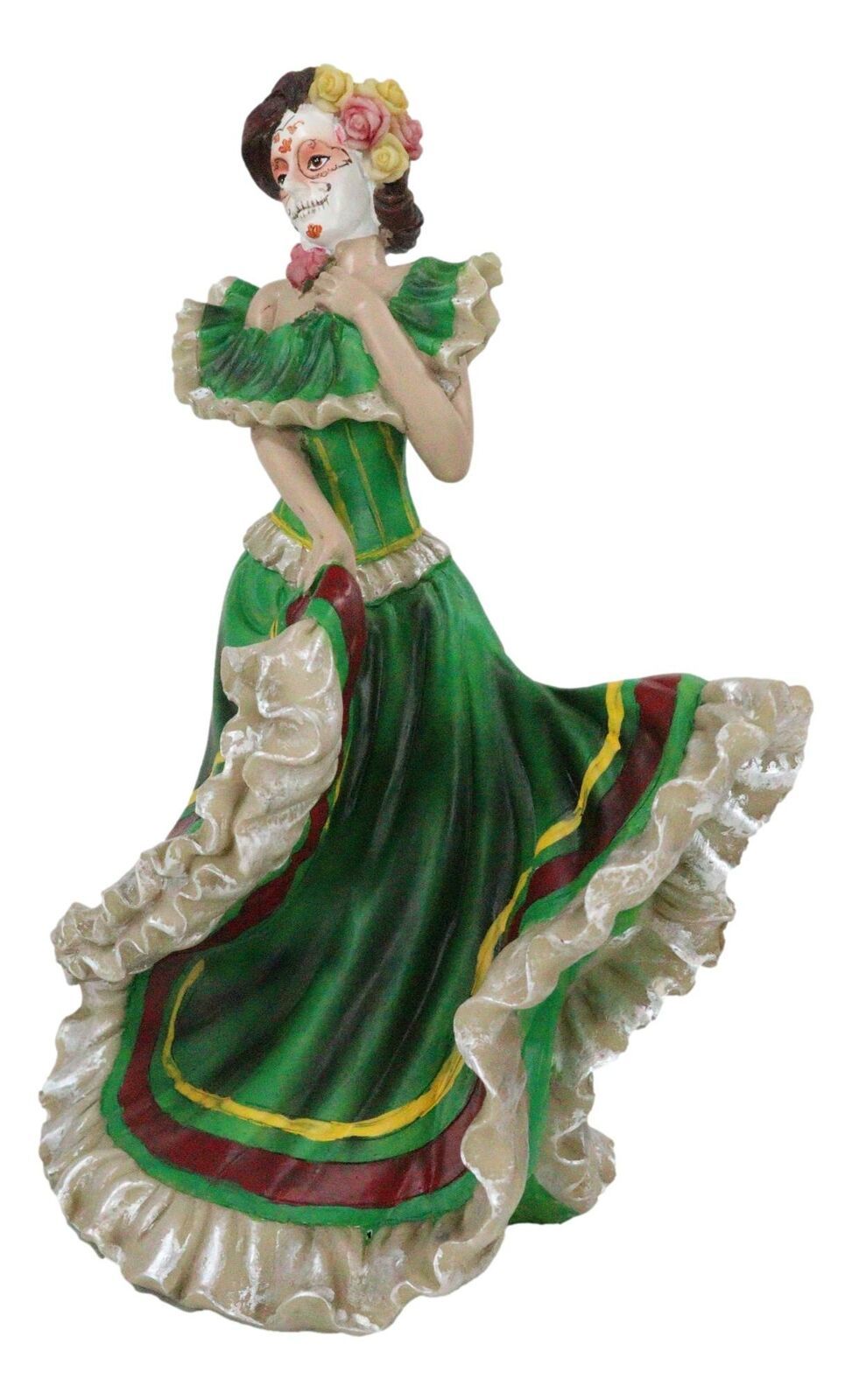 Dias De Muertos Day Of The Dead Traditional Green Gown Dancer Statue Sugar Skull