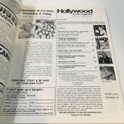 VTG Hollywood Studio Magazine September 1977 Latin Star Dolores Del Rio No Label