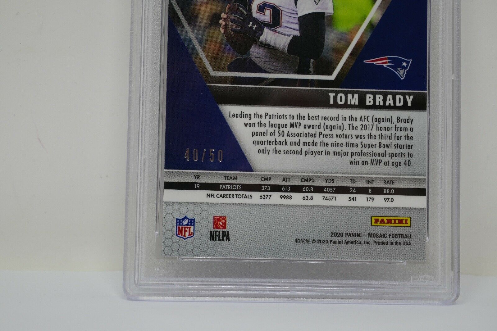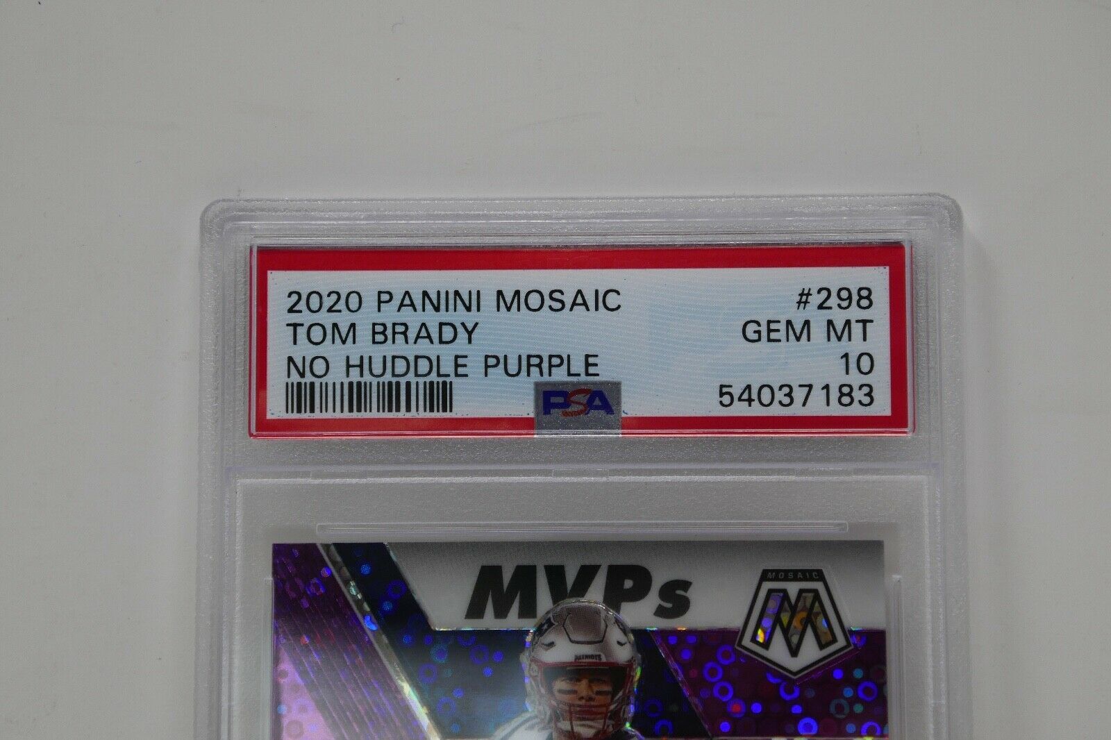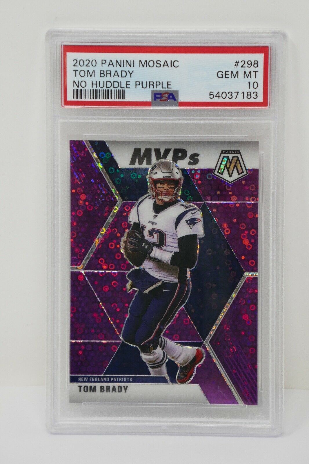 Authenticity Guarantee 2020 Panini Mosaic #298 Tom Brady No Huddle Purple/50...