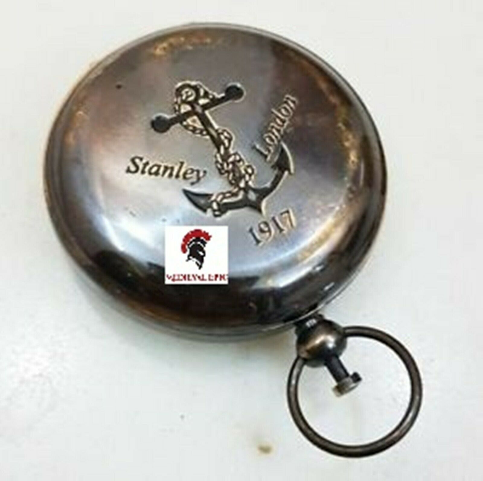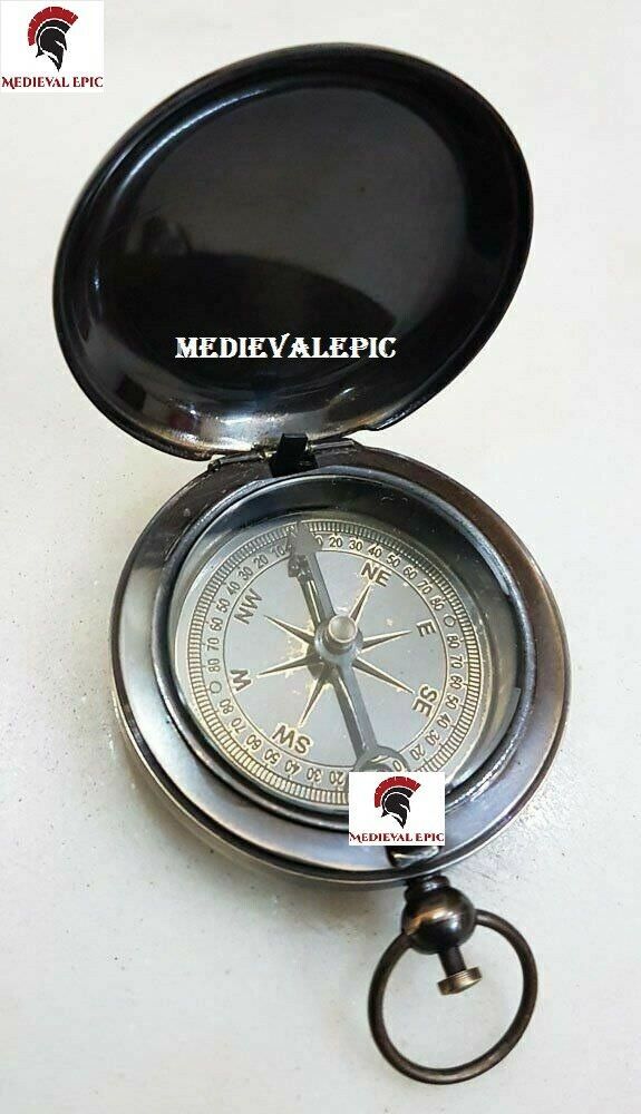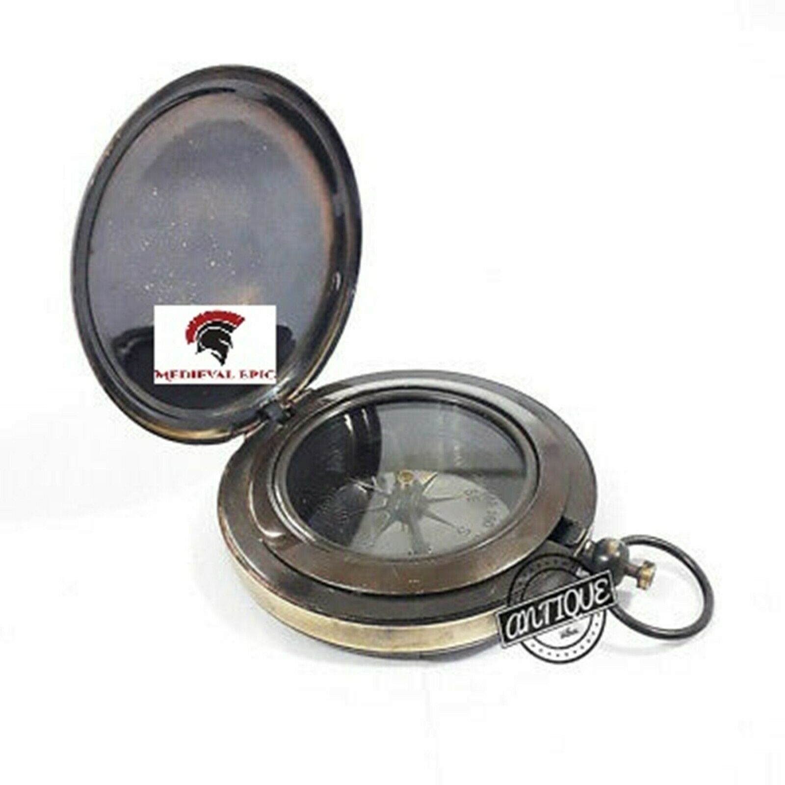 Antique Brass Compass Vintage Handmade Push Button Pocket Style Handmade Item