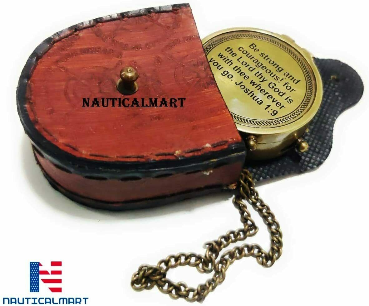 brass Be Strong Courageous Engraved Compass Directional Magnetic Pocket Personal
