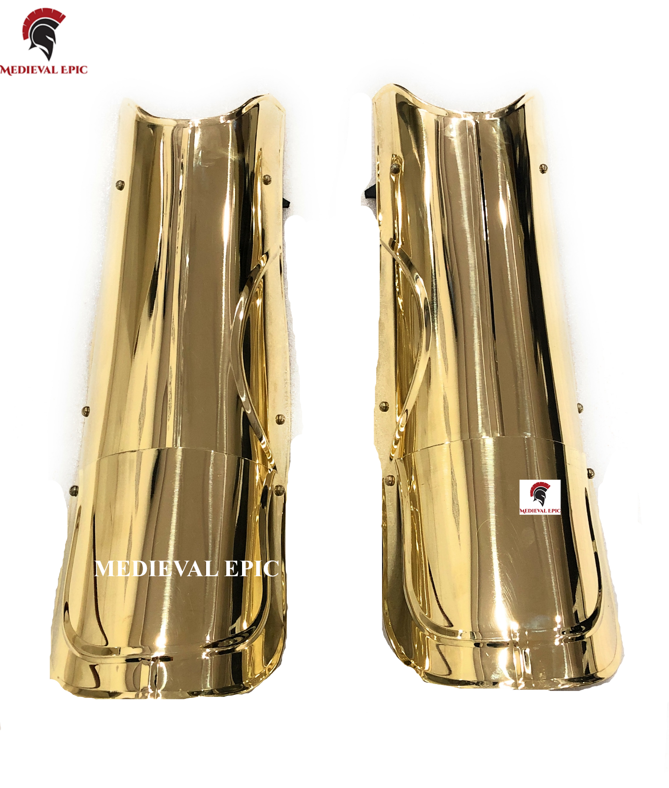 Arm Bracers w BRASS ACCENTS graves BY Medieval Epic Steel Arm Bracers w Brass Accents are made of Top Quality Mild Iron Steel with Historically accurate and authentic design. High quality leather fitted inside with top Quality Mild iron Steel w Brass Accents Full size and wearable.