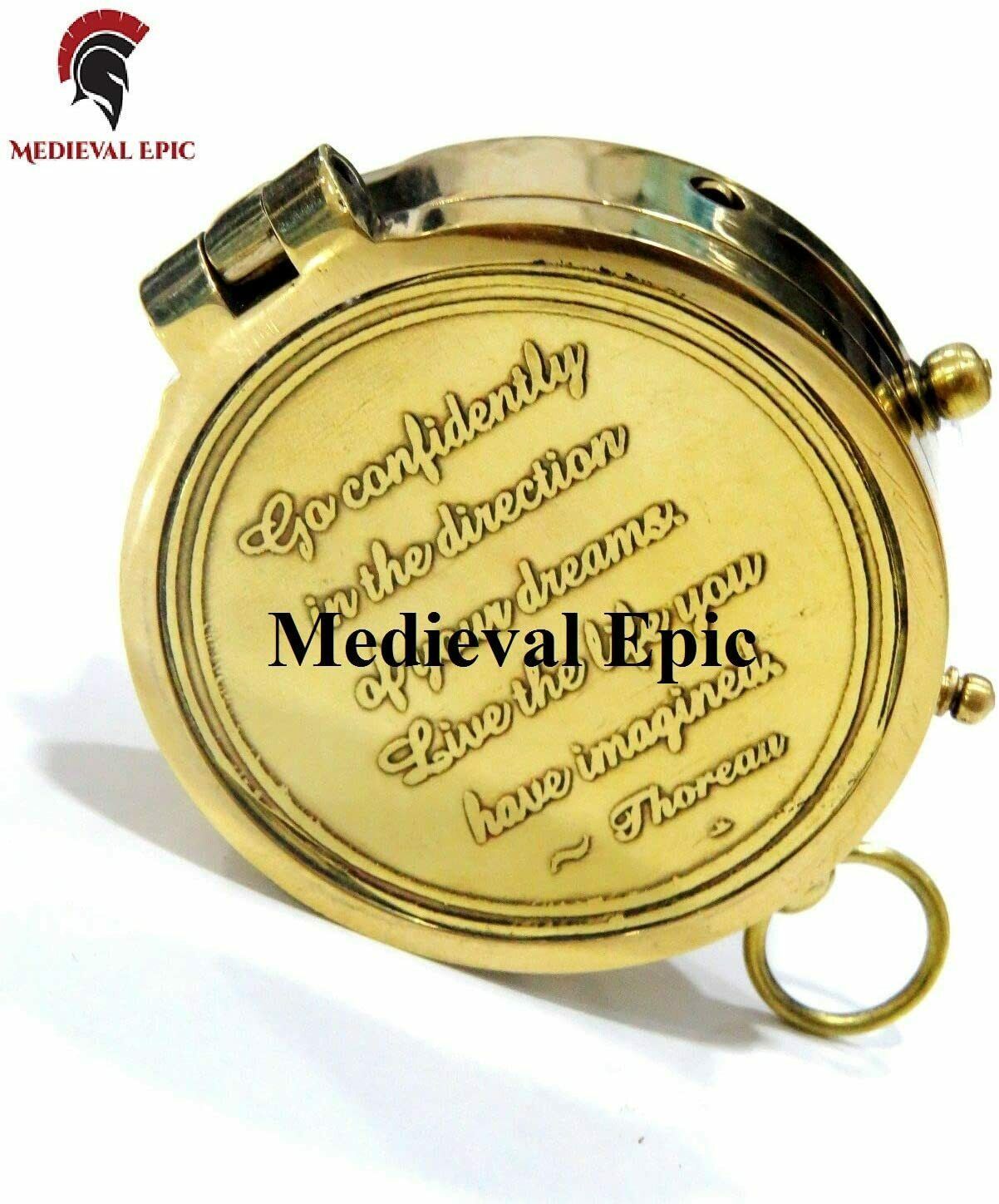 Medieval Epic Brass Compass Thoreau's Go Confidently Quote Engraved Compass