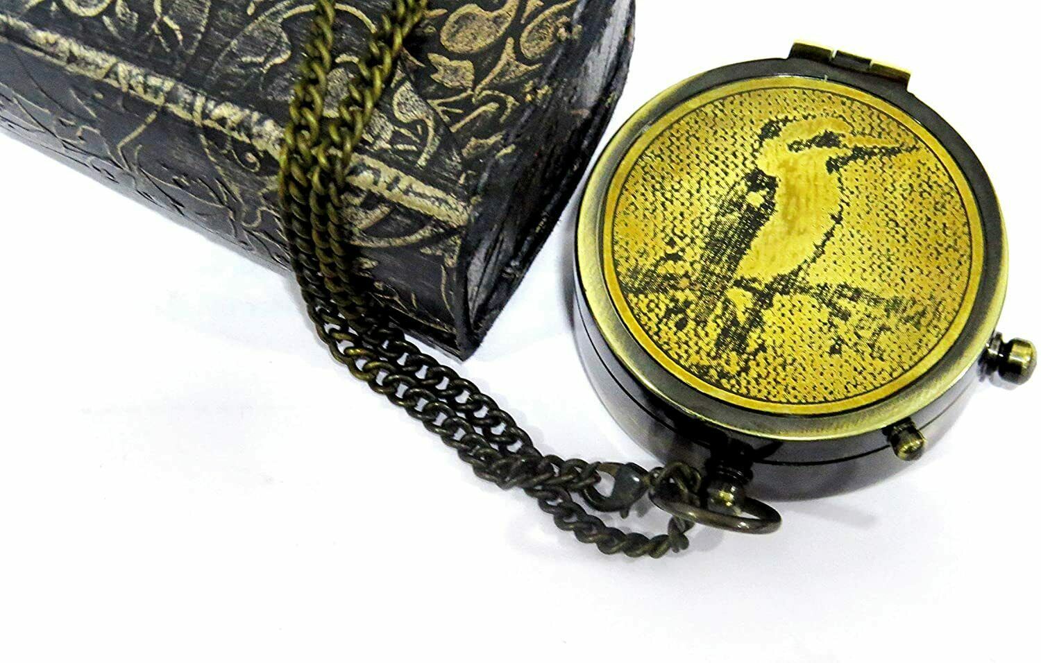 Brass Pocket Compass Sparrow Bird w/ Case Engraved In All Your Ways Acknowledge Him and He Shall Direct Your Path Proverbs 3:5 Directional Magnetic Navigational Nautical Compass