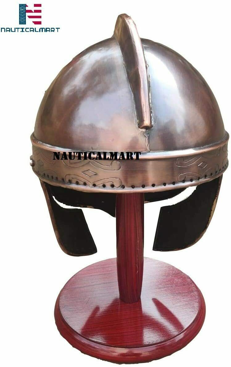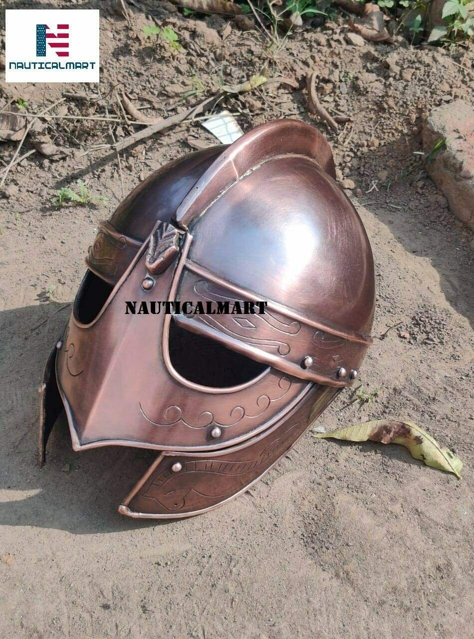 Features an Adjustable Chin Strap , made of 18 gauge Steel in copper antique finish.Made of solid steel brass, this is a Fully Wearable Viking Wolf Armor Helmet. Handcrafted by Artisans, it is Great for unique costumes, role-playing, and collection.