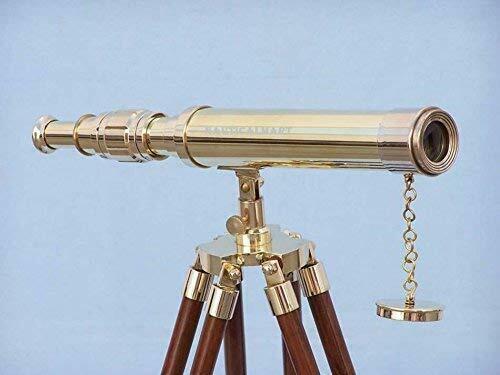 Floor Standing Brass Harbor Master Telescope 30" By Nauticalmart Dimensions: 14" L x 3" W x 30" H. High quality glass lens with adjustable focus. BEAUTIFUL DECORATIVE TELESCOPE