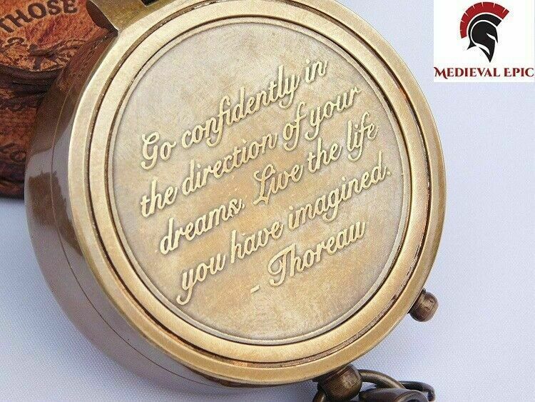 Solid Brass Compass In Antiquated Brass Finish With Thoreau's Quote "GO CONFIDENTLY IN THE DIRECTION OF YOUR DREAMS LIVE THE LIFE YOU HAVE IMAGINED".
