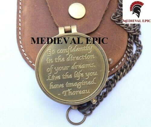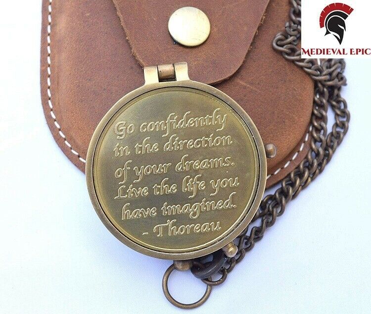 Brass Compass Engraved Thoreau's Go Confidently Quote Nautical Gift Leather Case