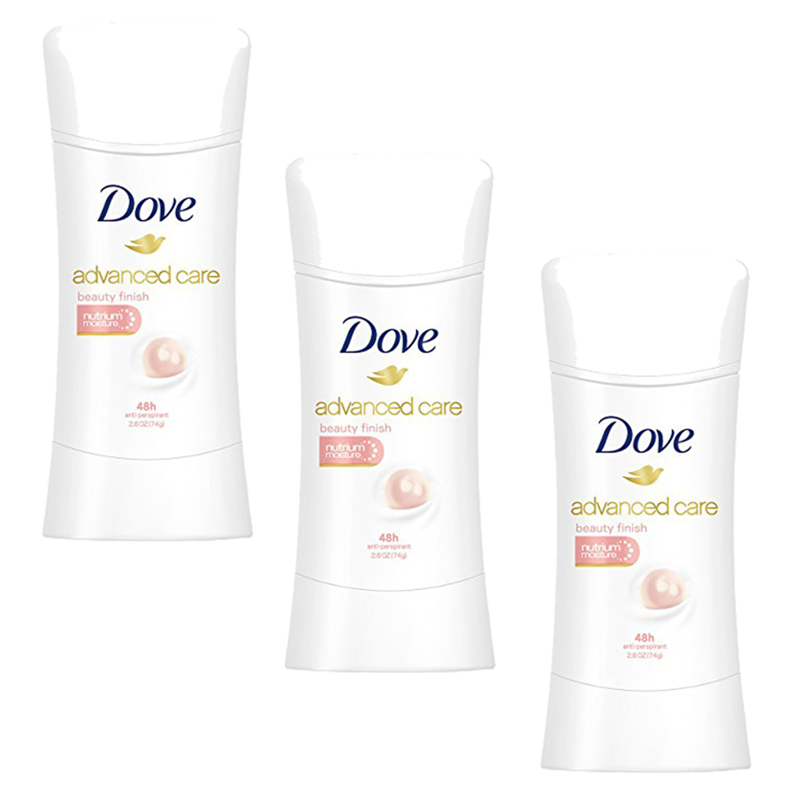 ove Advanced Care with NutriumMoisture Beauty Finish Anti-perspirant DeodorantDove Advanced Care with NutriumMoisture Beauty Finish Anti-perspirant Deodorant goes beyond 48-hr odor and wetness protection with NutriumMoisture to give your armpits the care they deserve. NutriumMoisture is comprised of ingredients known to moisturize skin for softer, smoother underarms in just 3 days. Find your favorite fragrance now with the best of Doves care.Beyond Odor and Wetness ProtectionDove Beauty Finish Anti-perspirant Deodorant goes beyond odor and wetness protection to give your armpits the care they deserve. It features a radiant scent that was inspired by a beautiful touch, and stays on your skin, not on clothes.DirectionsApply to underarms only.About DoveDove is committed to building positive self-esteem and inspiring all women and girls to reach their full potential. Every Dove product sold helps Dove and their charitable partners provide inspiring self-esteem programming for girls.What's in the BoxDove Advanced Care with NutriumMoisture Beauty Finish Anti-perspirant Deodorant, 2.6 Ounces.