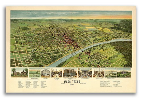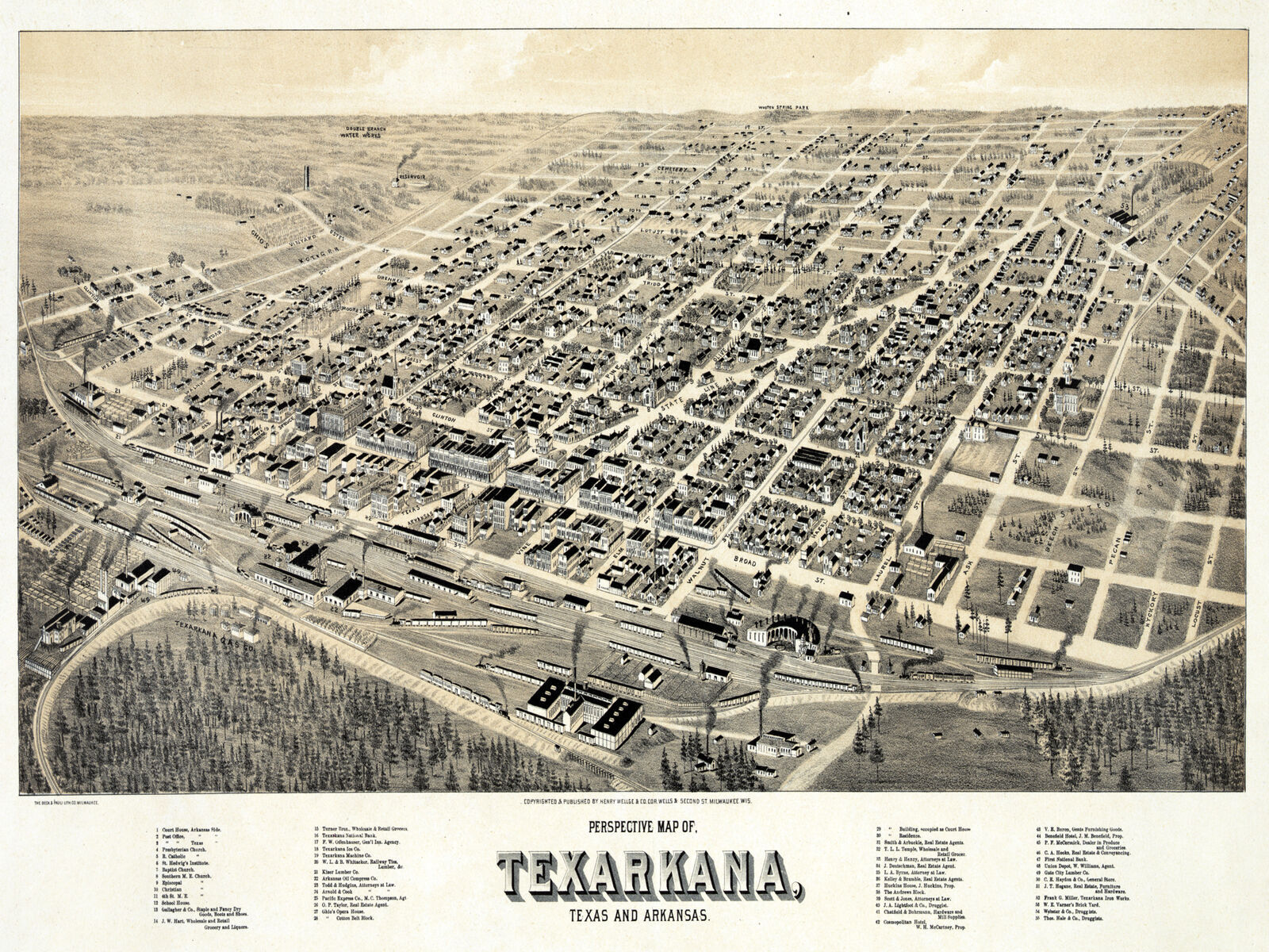 6258.Eyebird map of Texarkana Texas & Arkansas Poster.Aerial Wall Art Decor