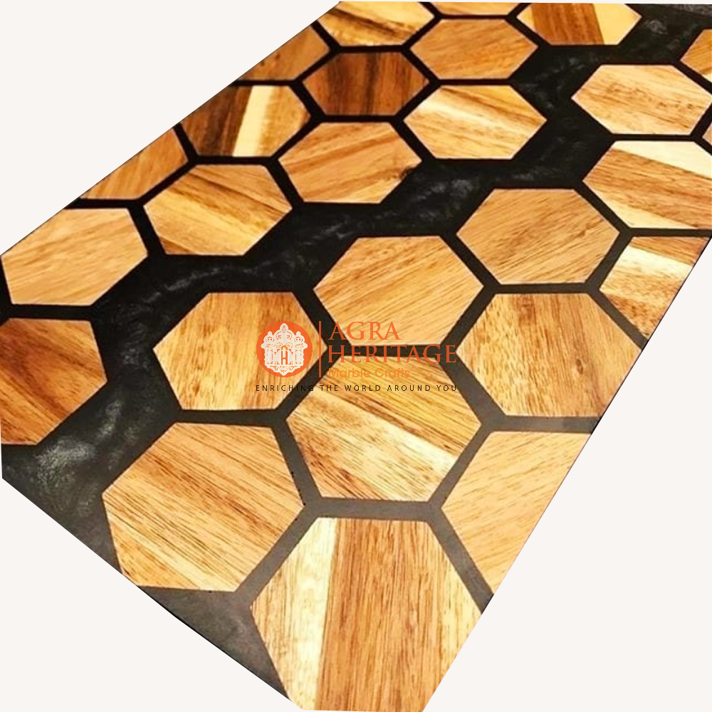 Handmade Dining Epoxy Table Honey Cube Acacia Black Resin Interior Hallway Decor