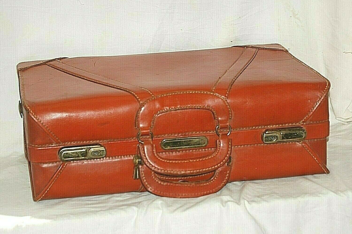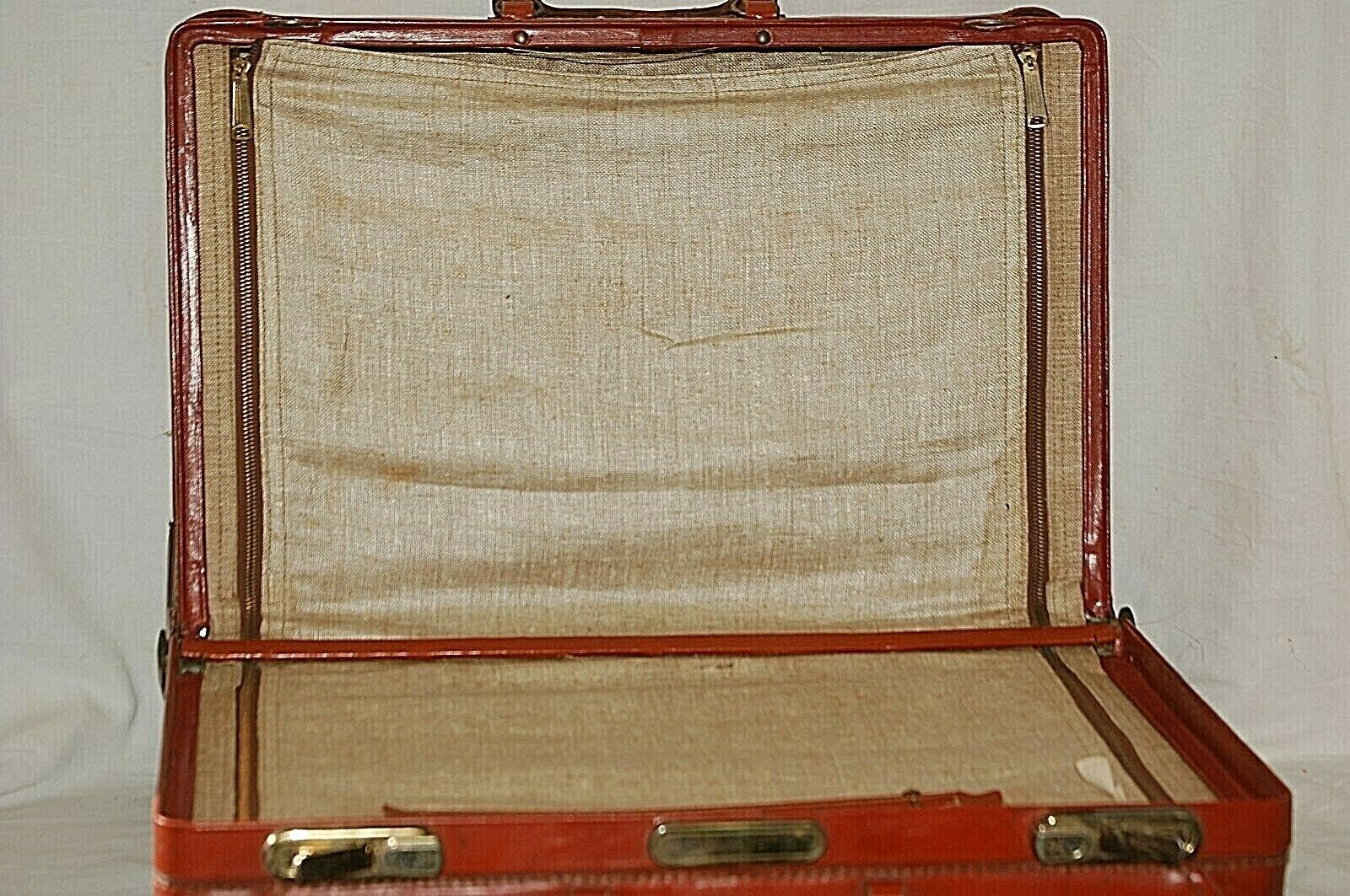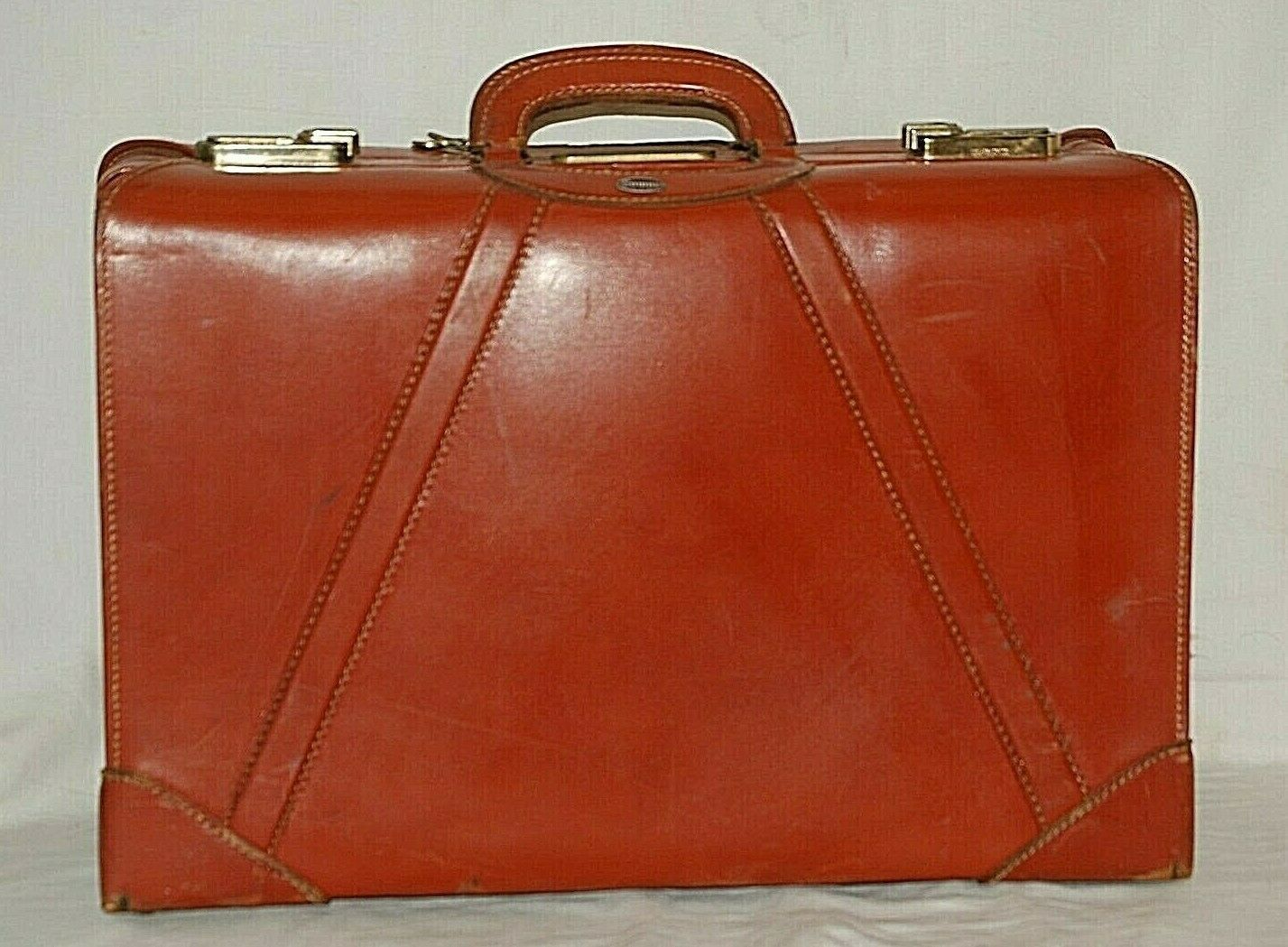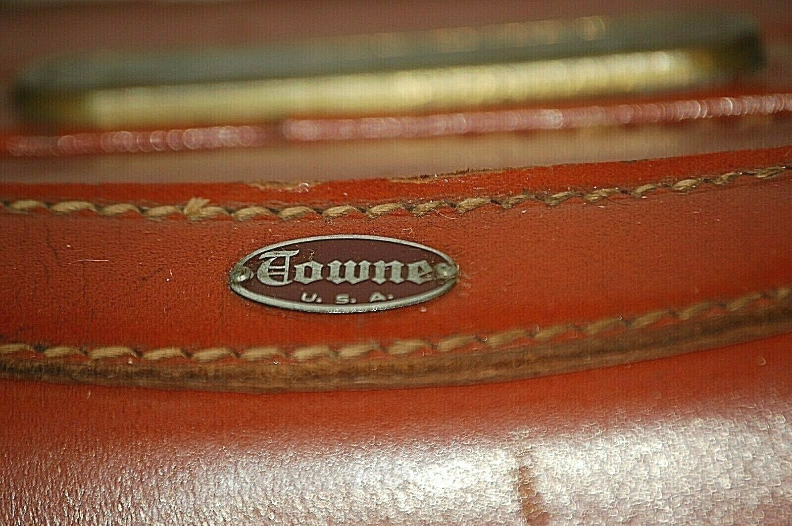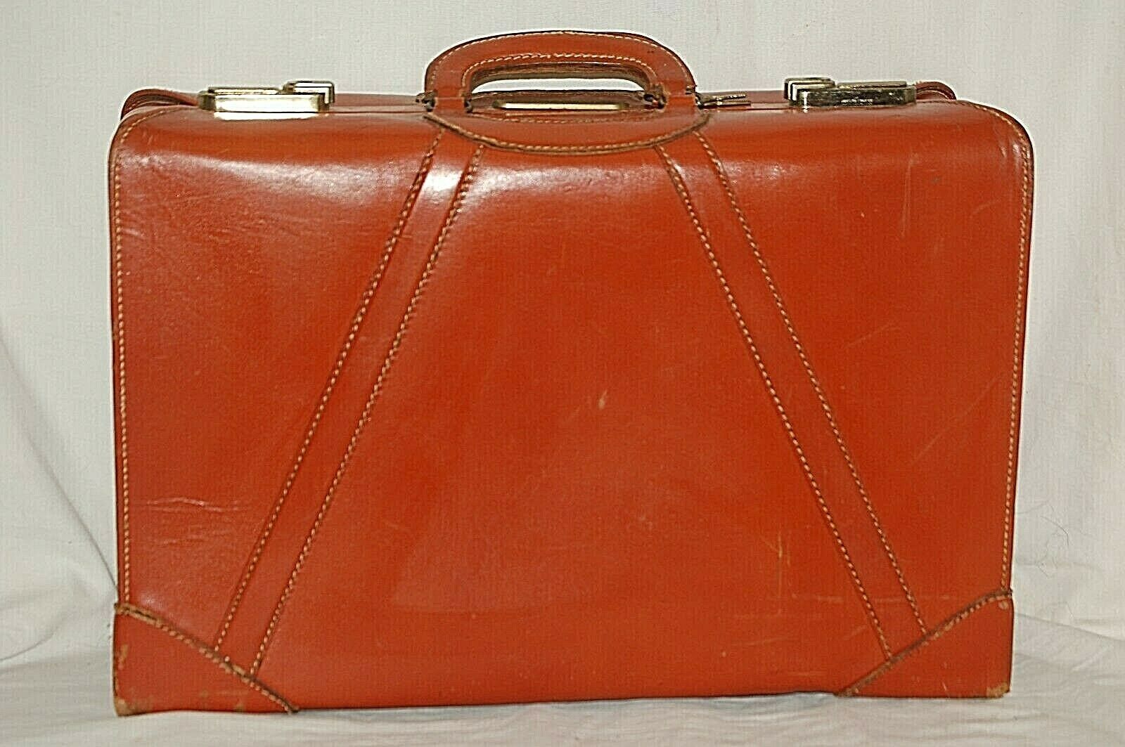 Towne USA Men's Leather Luggage Suitcase Genuine Irish Linen Lined 2 Keys Vntage