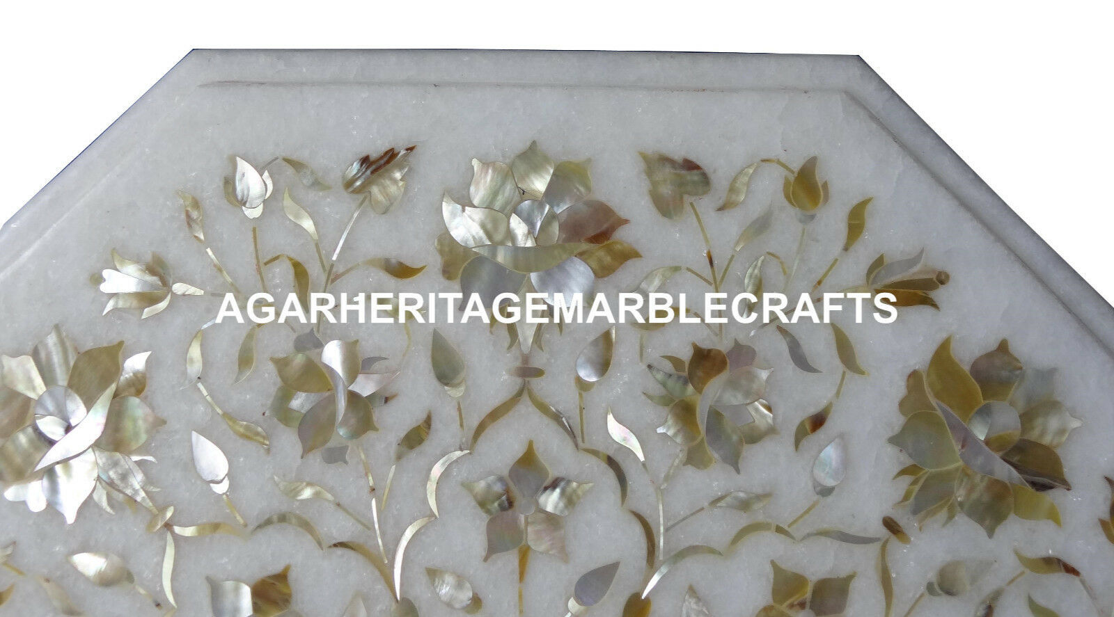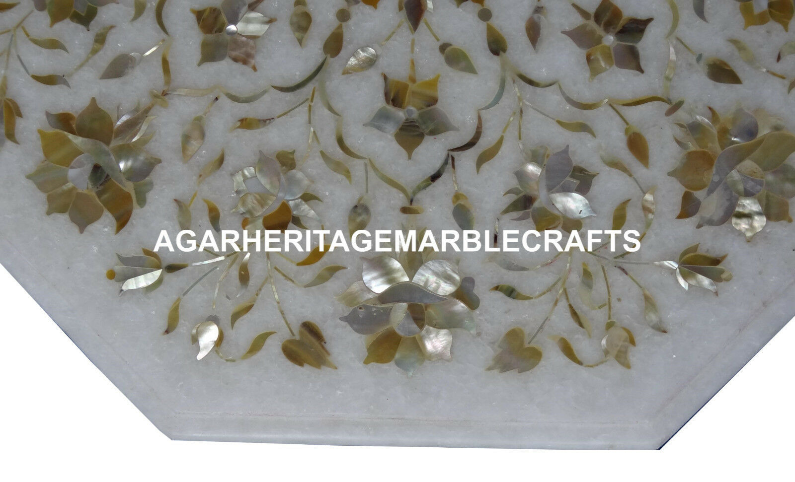 24"x24" White Marble Coffee Table Top Mother of Pearl Art Home Decor