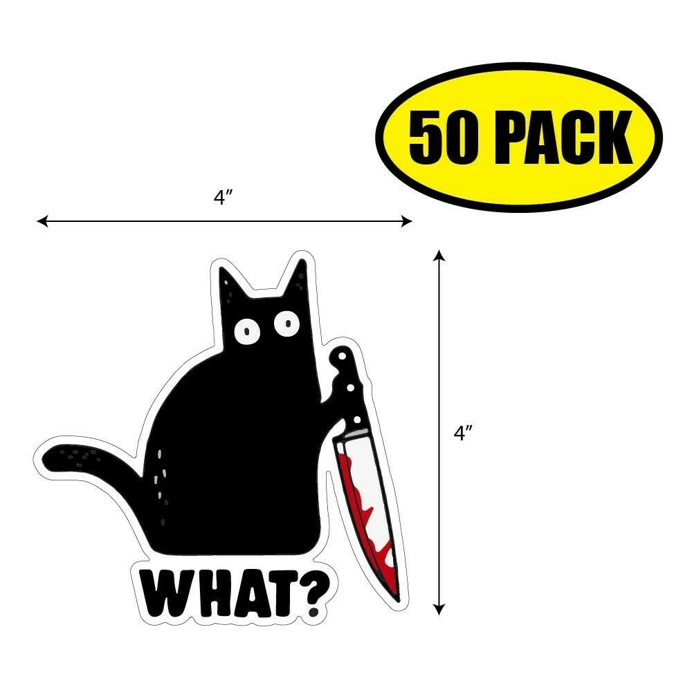 50 PACK 4"x4" WHAT CAT Sticker Decal Humor Funny Gift KNIFE VG0112