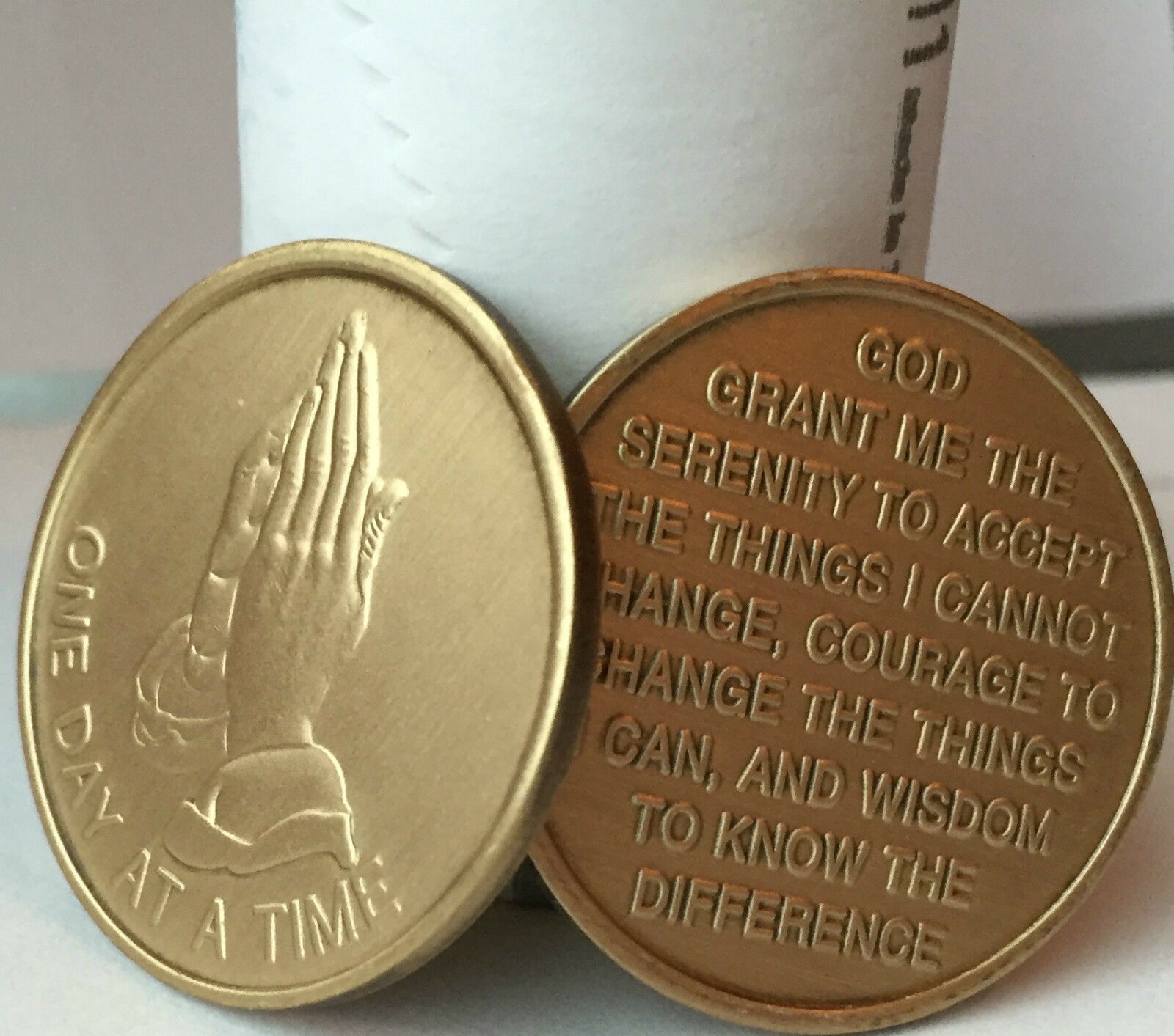 Bulk Lot of 25 Praying Hands One Day At A Time Serenity Prayer Medallions Chips