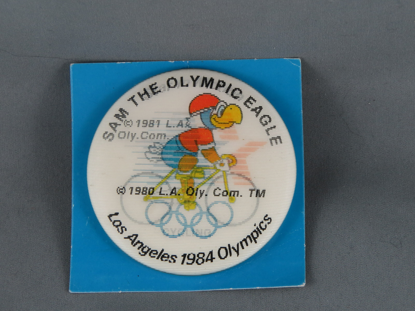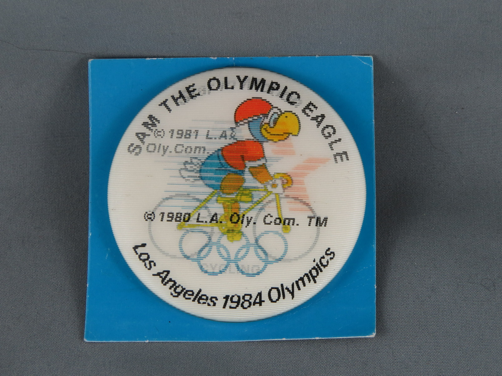 Up for sale is a vintage Olympic Pin. This pin is an event from the 1984 Summer Games which were held in Los Angeles. The pin is a hologram image pin. One image on the pin is the official 1984 Summer Games 3 Star Logo. The other image on the pin is of Sam the Eagle riding a bicycle. What a great addition to any Olympic pin collection.