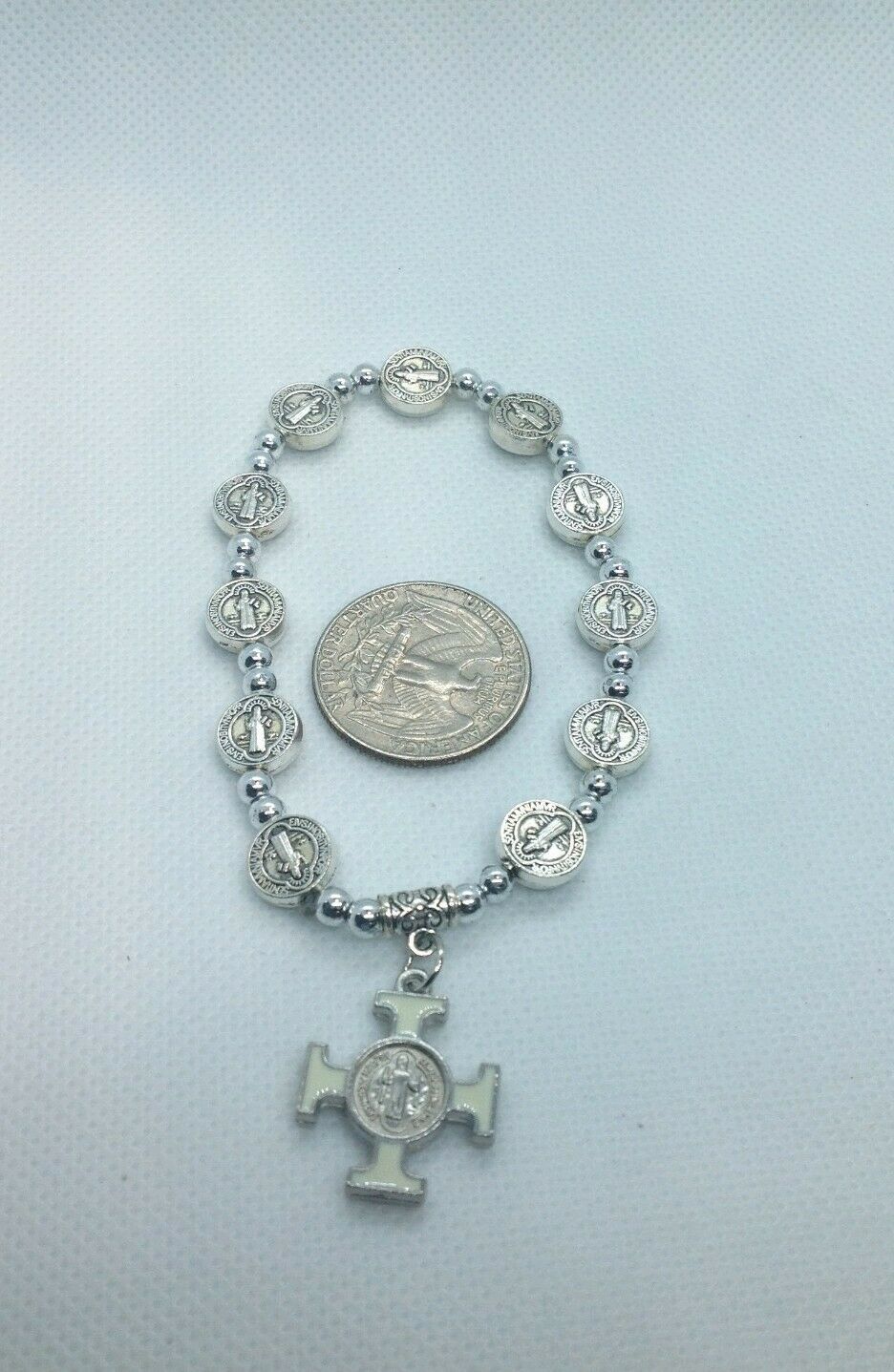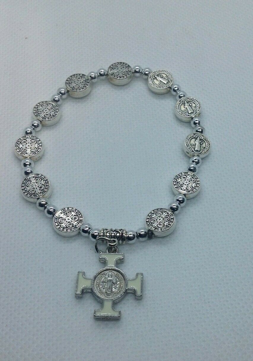 Saint St Benedict Medal Cross Crucifix Rosary Bracelet Pulsera De San Benito.