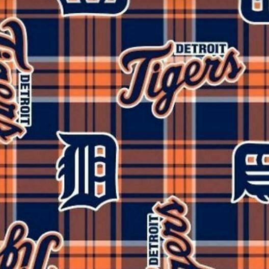 Package of Short Pieces Detroit Tigers Plaid MLB Fleece Fabric Print D006.10