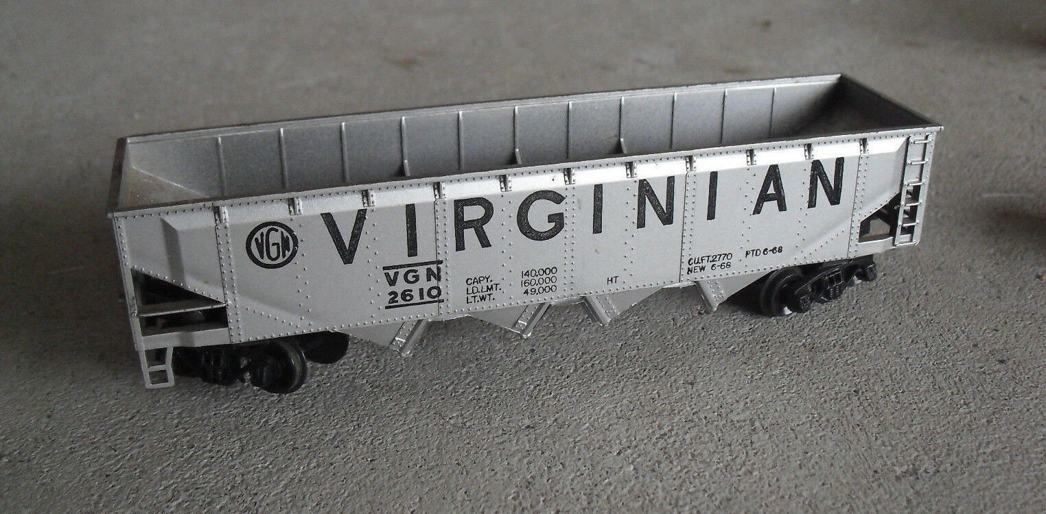 You are bidding on a circa 1980s era, plastic, Tyco marked, HO Scale, Virginian VGN 2610 hopper car in the picture. Nice shape with light wear, two missing lower steps and brake wheel, and could use some fine cleaning. Zoom in for details. About 5 3/4 inches long.