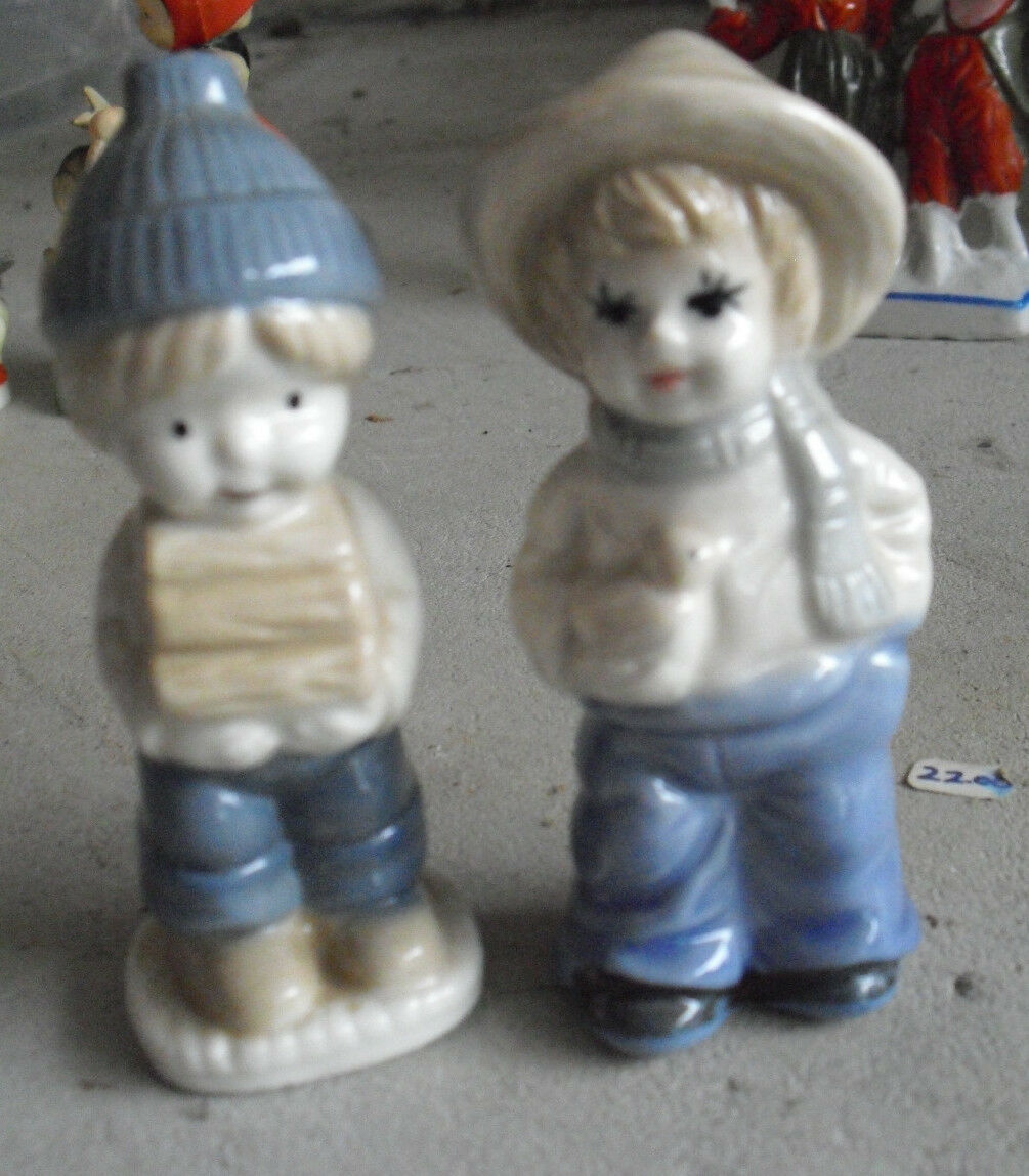 Lot of 2 Vintage Porcelain Boy with Wood and Girl with Duck Figurines 3 3/4"