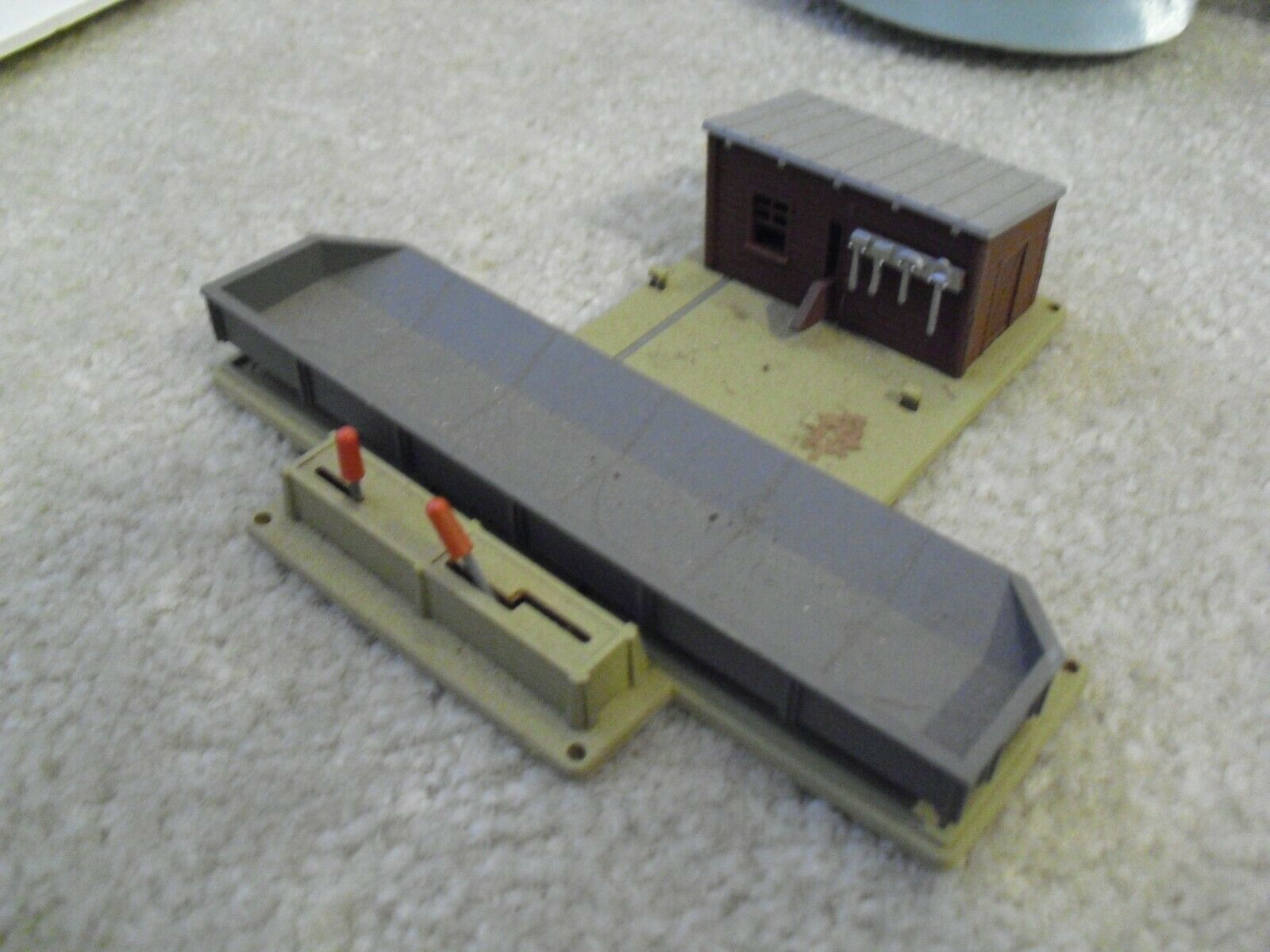 Nice, vintage, HO scale, Bachmann marked, log or similar type dump station stop in the picture. 6 1/4 inches wide. Glued together with some light general use, could use a general cleaning. Zoom in for details.