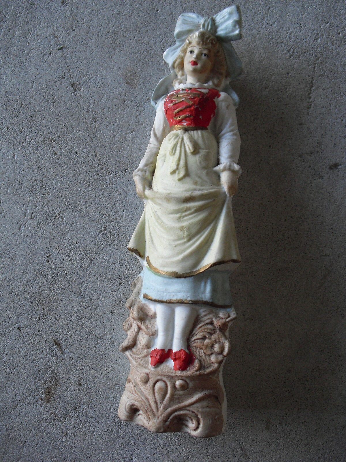 Very nice, early 1900s era, hollow porcelain bisque girl figurine. Marked on the back with some type of G logo and number 8915. Nice old piece in very good shape with general paint wear and could use some fine cleaning. About 8 1/4 inches tall.