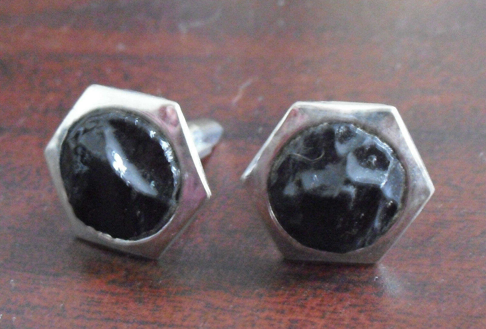 Unique Set of Silver and Black Pat Pending Marke Metal Cufflinks