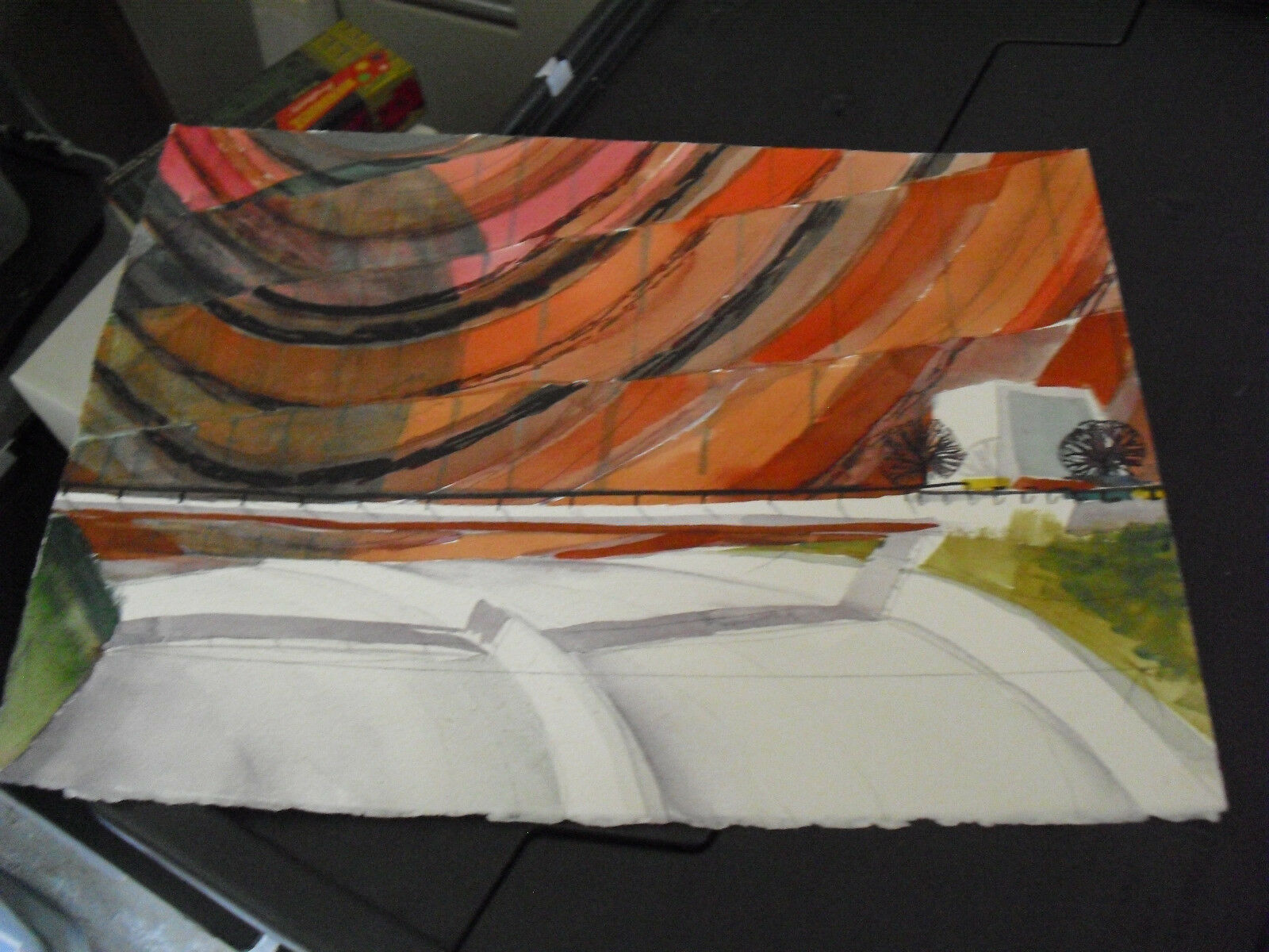 Original Goembel Watercolor Painting - Colorful Highway Bridge