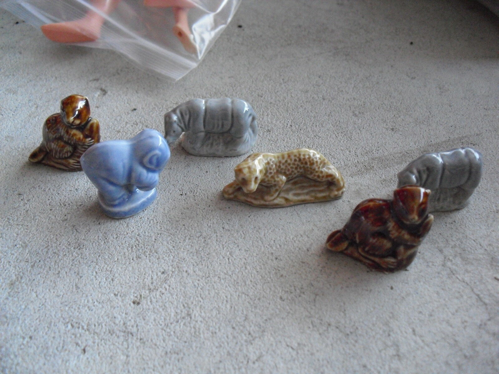 Very nice, vintage lot of 6 small WADE England figurines in the picture. Looks like 2 Rhinos, an elephant, a tiger and 2 beavers or woodchucks. Nice lot in great shape.