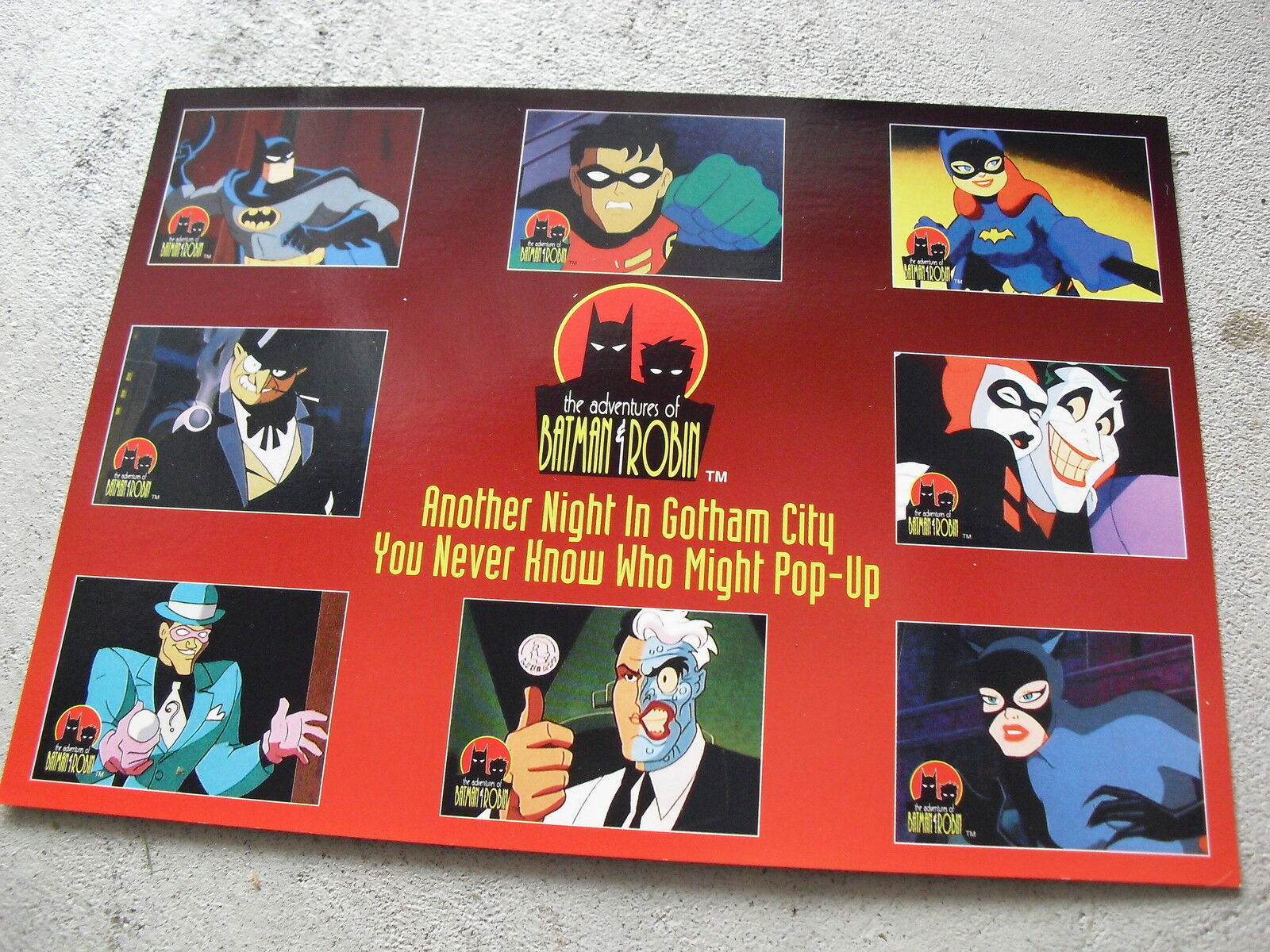 You are bidding on a beautiful uncut promotional sheet of for the 1995 Skybox, The Adventures of Batman Robin trading card set. 7 1/2 x 10 1/2 inches. Neat collectible in great shape with light corner wear. Look at the picture.