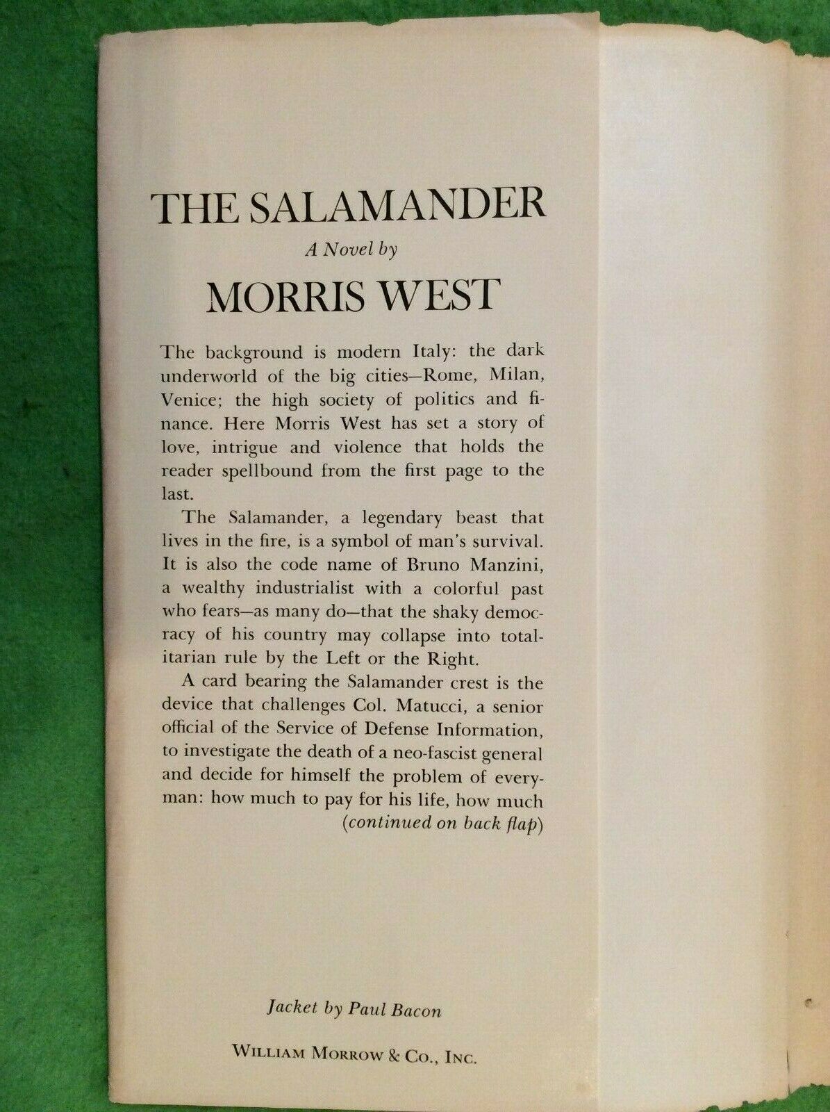 THE SALAMANDER by MORRIS WEST - HARDCOVER