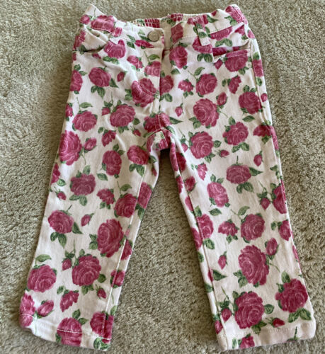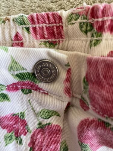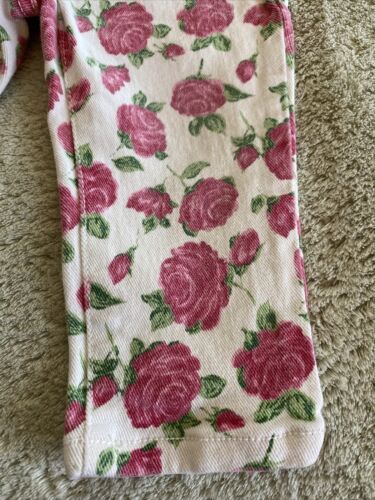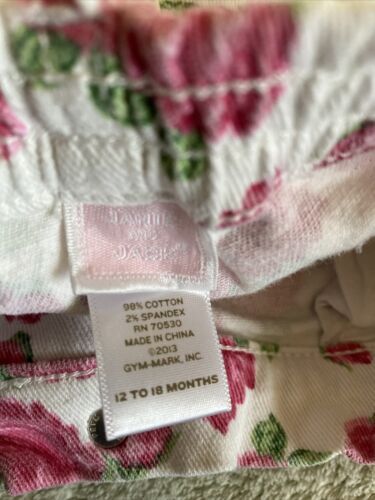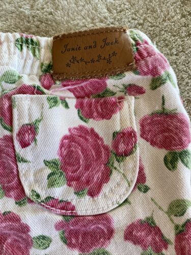 Janie Jack Girls White Pink Roses Jeans 12-18 Months.