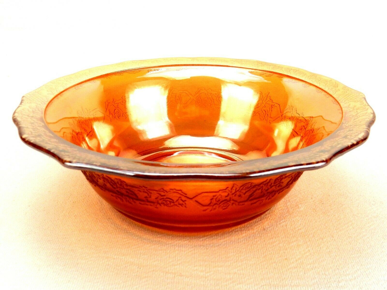 Federal Glass Vintage Veggie Serving Bowl, Marigold Normandie Lattice Bouquet