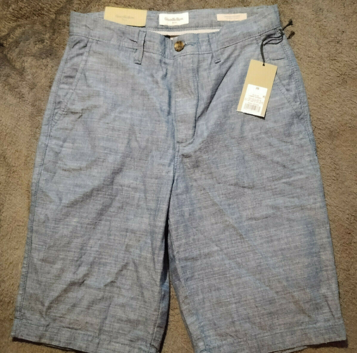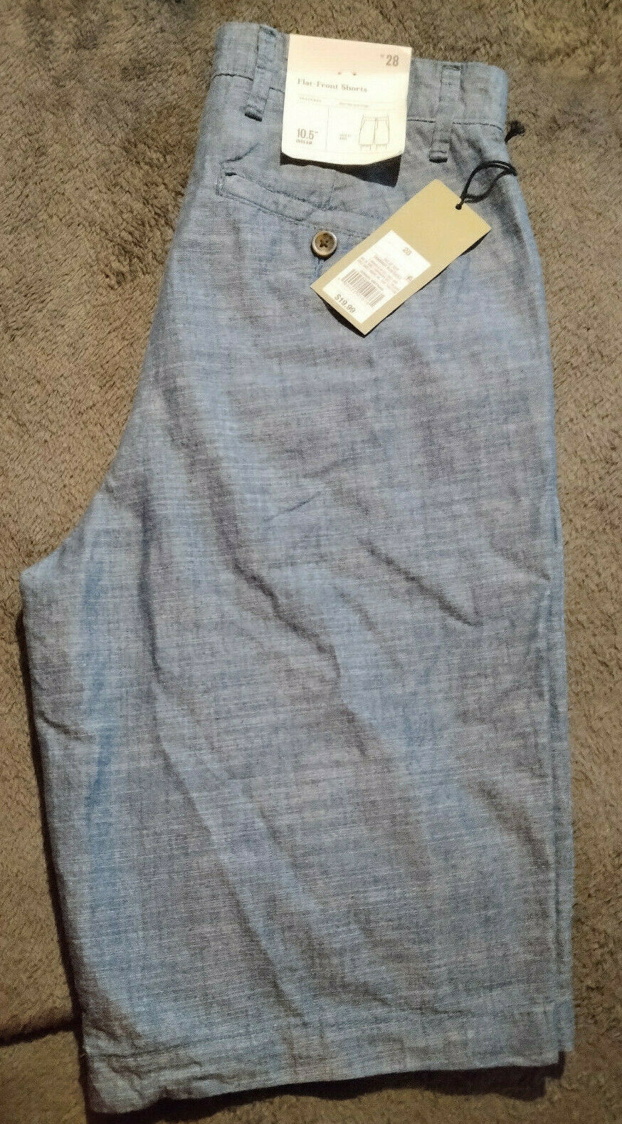 NWT Goodfellow Mens Flat Front Shorts Chambray Blue Casual Summer Chino Size 28
