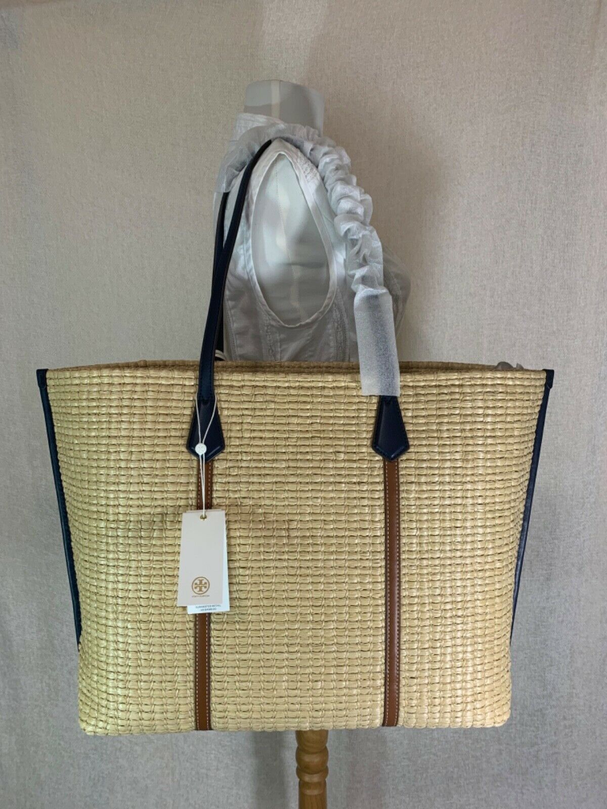 NWT Tory Burch Natural/Navy Destination Perry Straw Tote $498