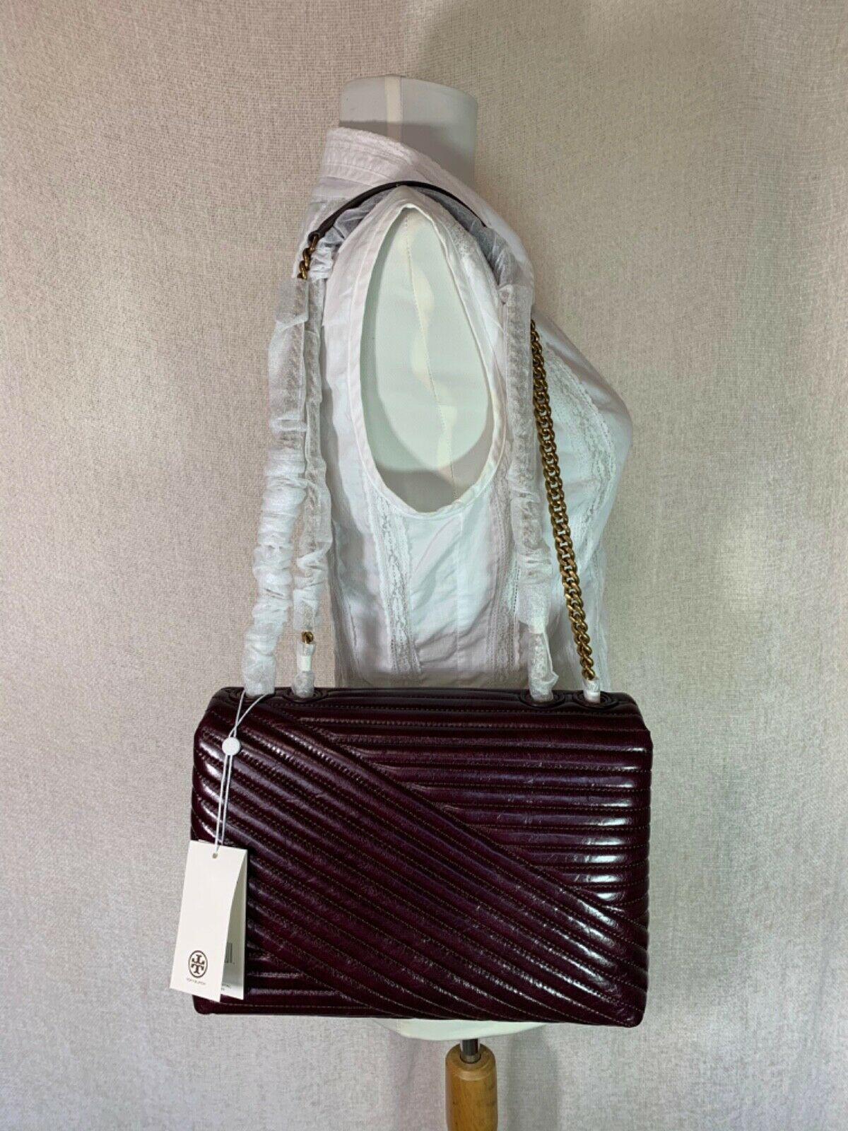 NEW Tory Burch Glazed Fig Kira Chevron Convertible Shoulder Bag $578