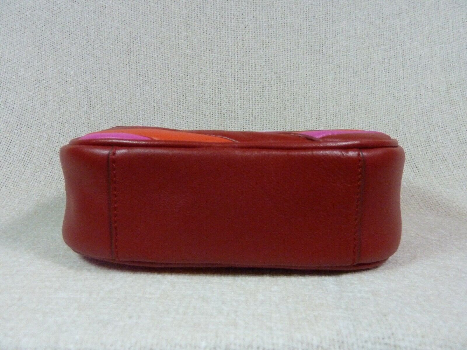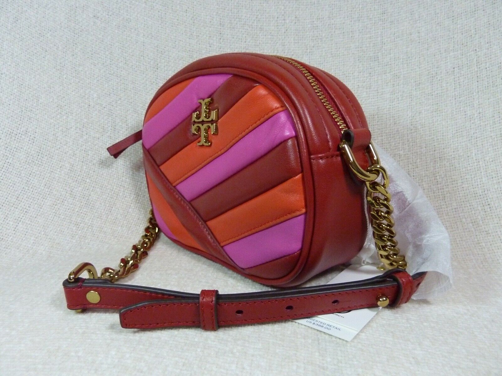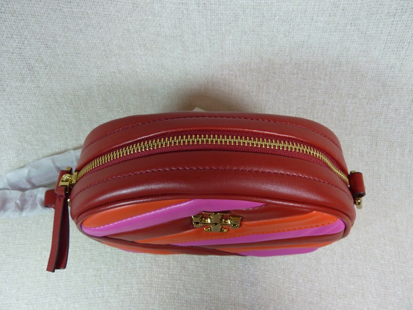 You Are Looking At A Very Adorable Red Apple/Bright Samba/Crazy Pink Color Block Leather Kira Chevron Small Camera Crossbody Bag By Tory Burch