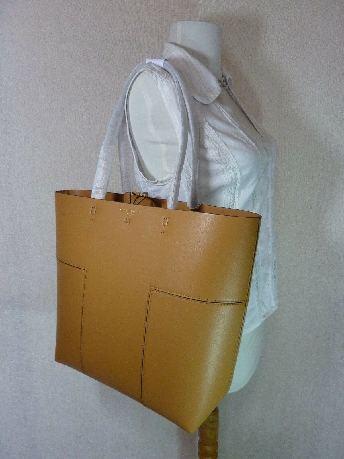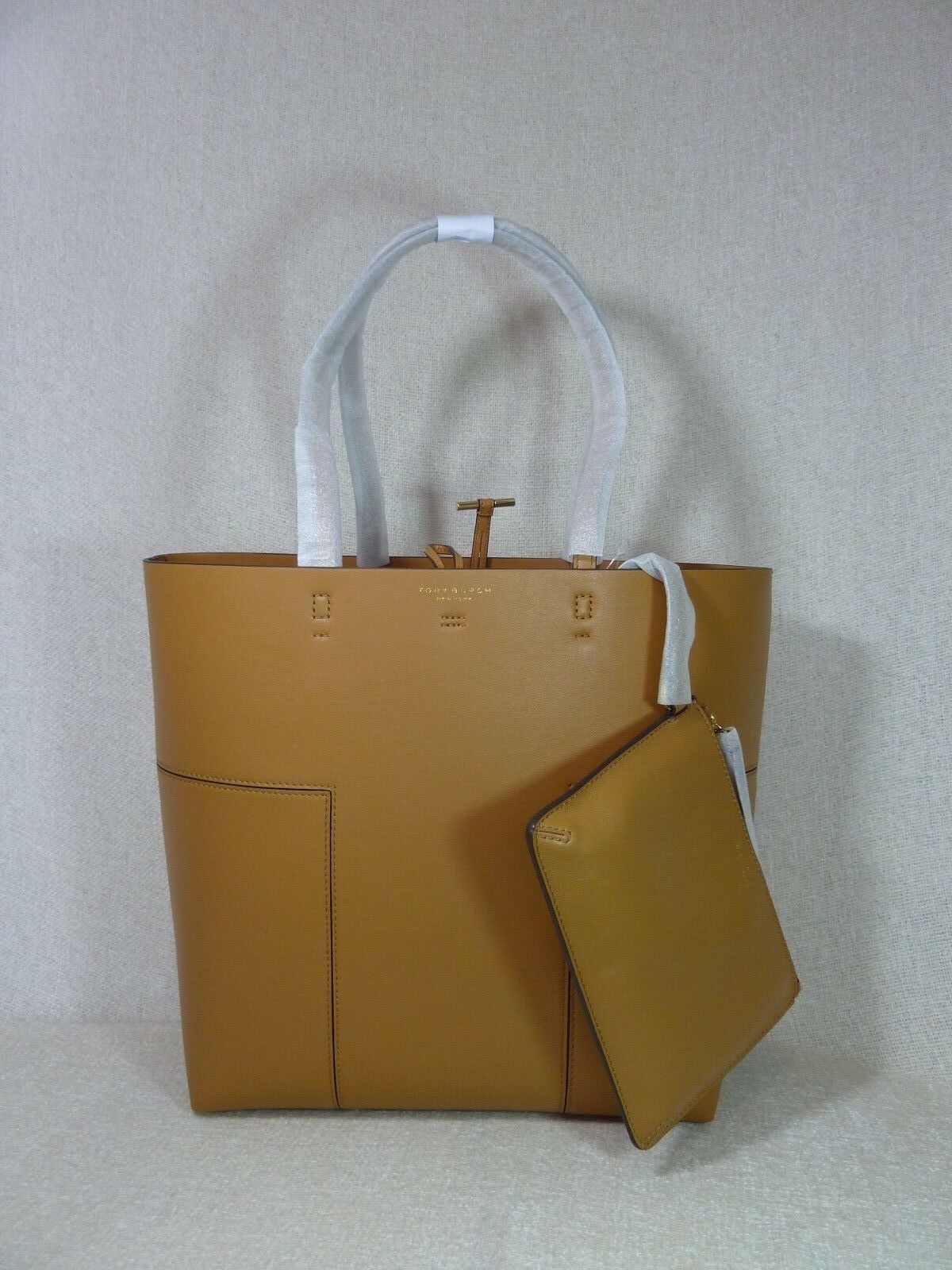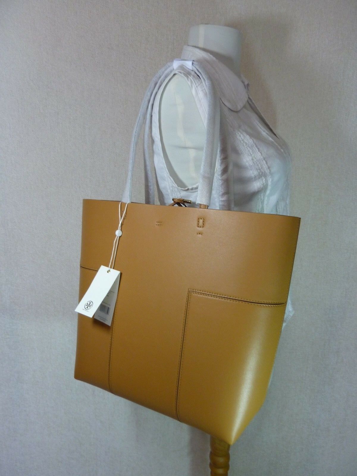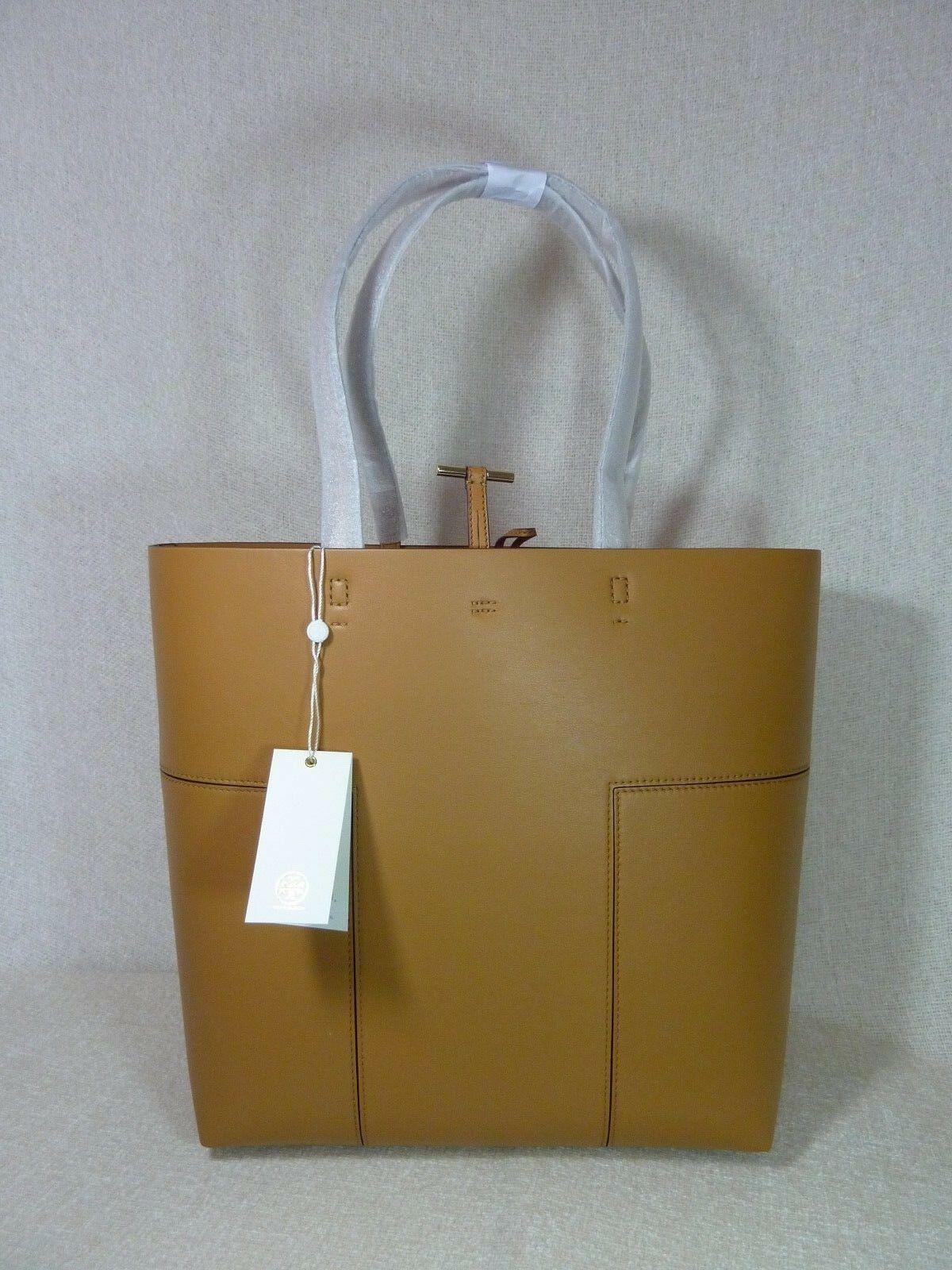 NWT Tory Burch British Tan/British Tan Leather BLOCK-T Tall Tote $478